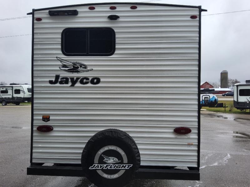 The Jayco Jay Flight SLX travel trailer is quite easy to own because it is lightweight for an easier towing experience. Built on a fully integrated A-frame with galvanized-steel, impact-resistant wheel wells, the Jay Flight SLX has quality at its very foundation. That quality continues on to the electric self-adjusting brakes, easy-lube hubs, Magnum Truss roof system, and LP quick connect. Some of what the mandatory Customer Value Package includes is backup camera prep, Keyed-Alike entry and baggage doors, marine grade exterior speakers, and an on-demand tankless water heater.