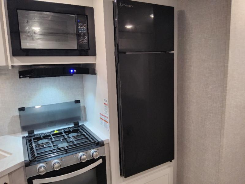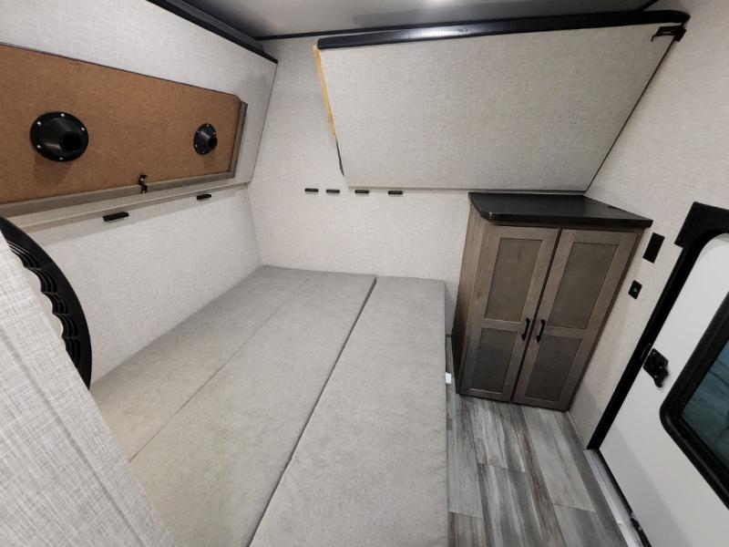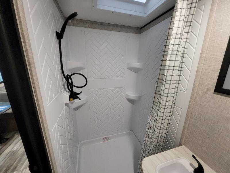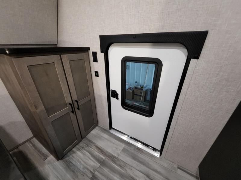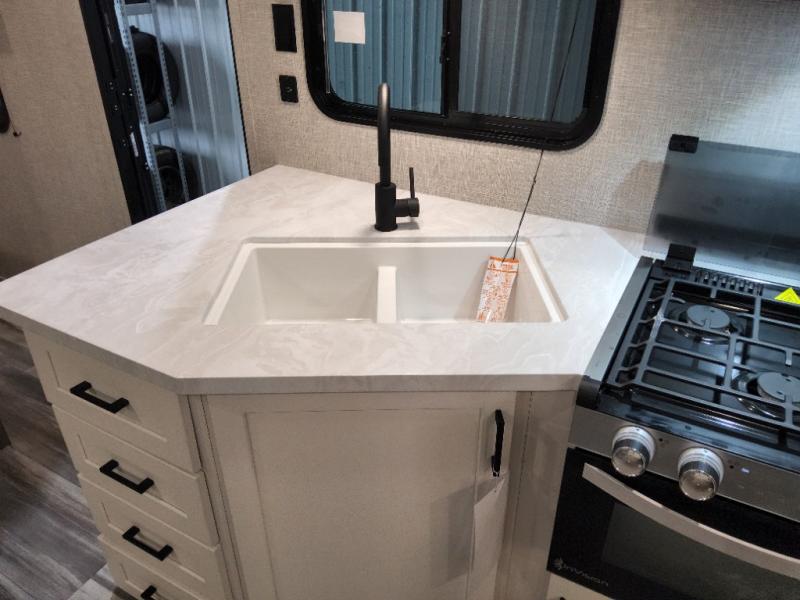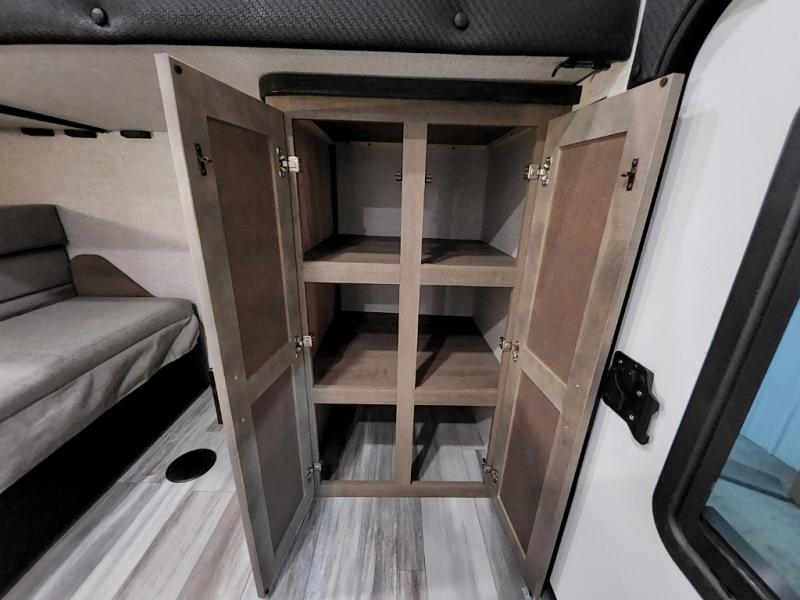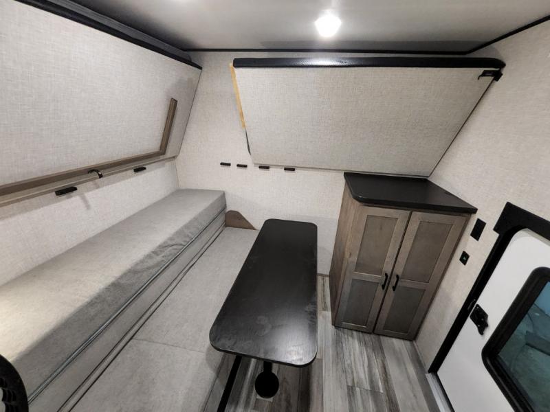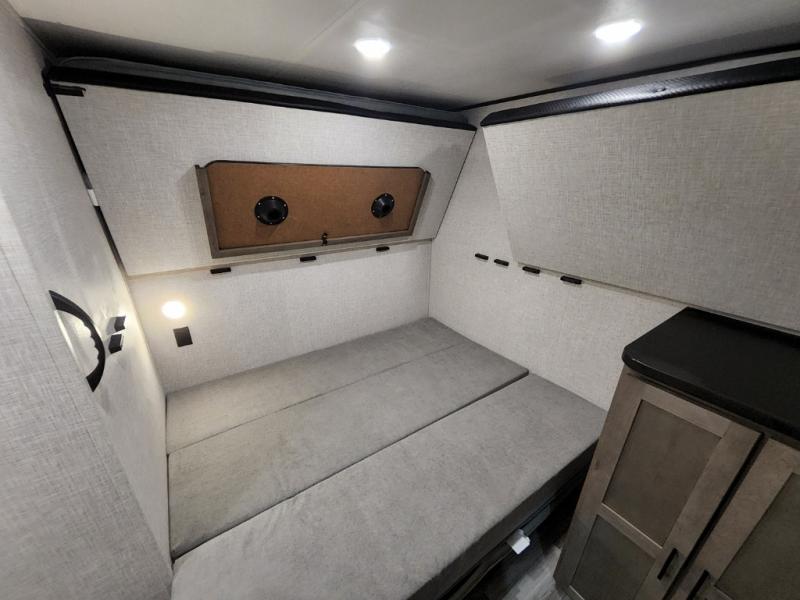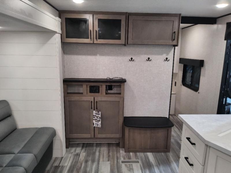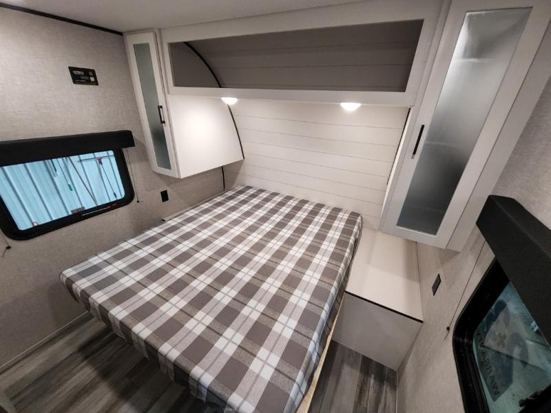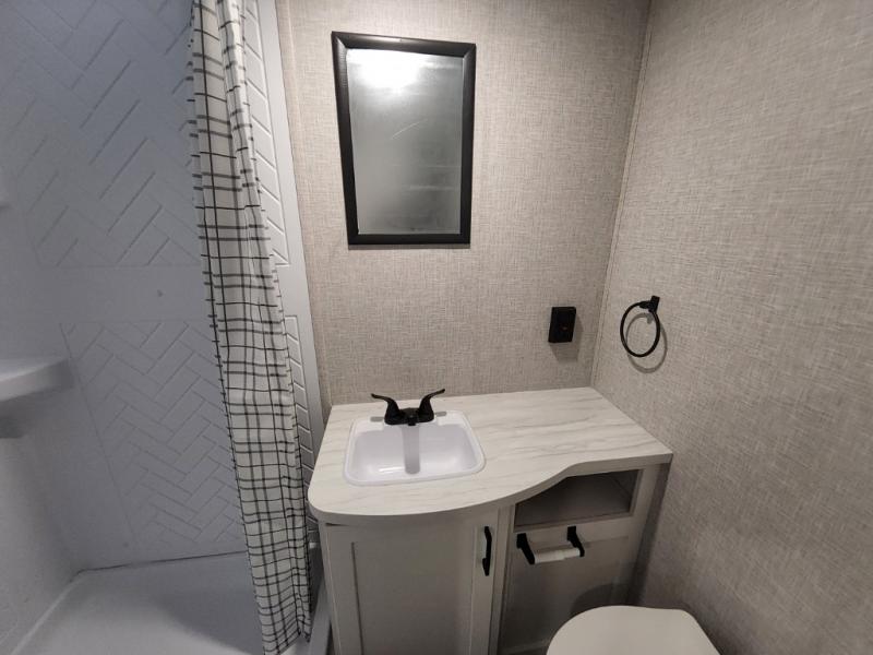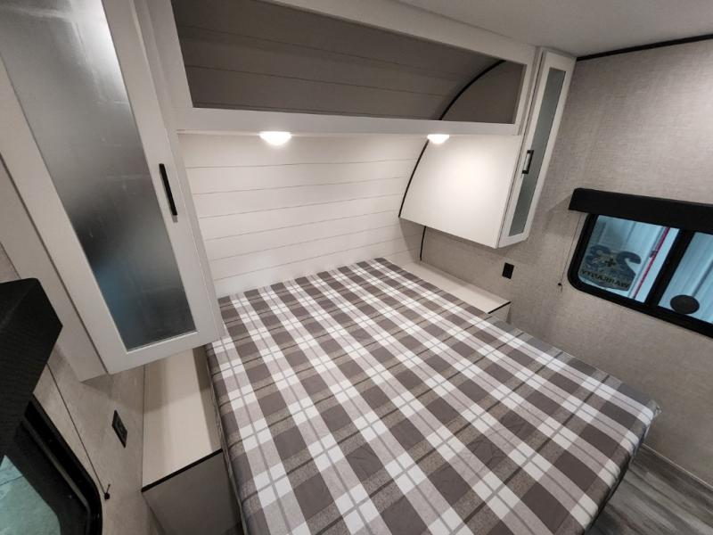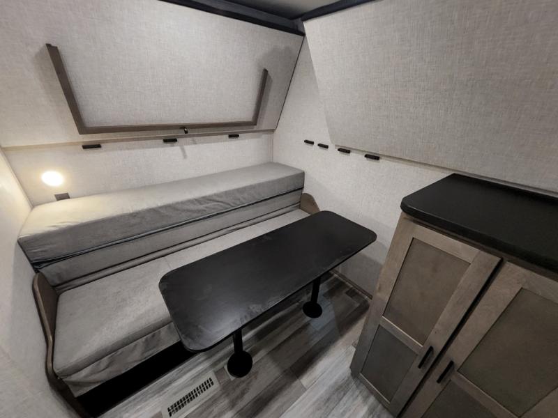 Spacious, accommodating, comfortable; start camping in this trailer that offers something for everyone! The popular bunkhouse offers two 31" x 75" bunk beds above a convertible sofa with 60" x 75" queen mattress, a wardrobe, and a cargo door for easy access. The kitchen provides full amenities to make delicious home cooked meals. The U-shaped dinette and Jack-knife sofa slide give you more floor space to stretch out and provide extra sleeping space, plus you will appreciate the bench/storage as you walk into the trailer. And the large pantry will hold all the goodies for the big group. The front bedroom gives you a 60" x 75" queen bed to sleep on, dual wardrobes and an overhead shelf to place your clothing and things, plus a space saving door to close for privacy.