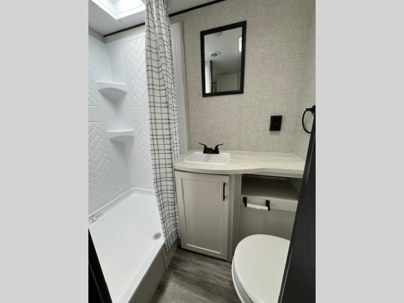 Spacious, accommodating, comfortable; start camping in this trailer that offers something for everyone! The popular bunkhouse offers two 31" x 75" bunk beds above a convertible sofa with 60" x 75" queen mattress, a wardrobe, and a cargo door for easy access. The kitchen provides full amenities to make delicious home cooked meals. The U-shaped dinette and Jack-knife sofa slide give you more floor space to stretch out and provide extra sleeping space, plus you will appreciate the bench/storage as you walk into the trailer. And the large pantry will hold all the goodies for the big group. The front bedroom gives you a 60" x 75" queen bed to sleep on, dual wardrobes and an overhead shelf to place your clothing and things, plus a space saving door to close for privacy.