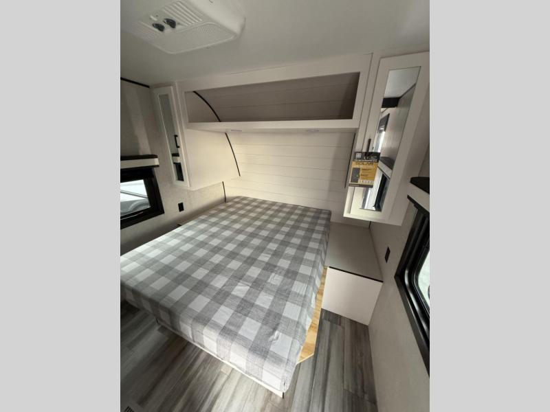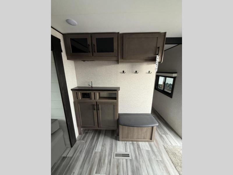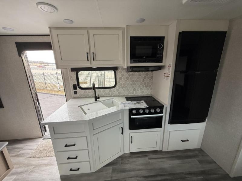 Jayco’s Jay Flight Travel Trailer lengths range from 25'4 to 40'6 for longer trips and roomier stays. Additionally, while most other manufacturers have an interior height of 6’6”, Jay Flight offers 6’9” interior heights, allowing for more head space. On the exterior, you’ll find a neatly finished and lighted exterior pass-thru storage space. The interior design also allows more storage space with its oversized, solid hardwood Maple cabinet doors and kitchen drawers. The hidden cabinet hinges give the Jay Flight a residential look and feel. Other places you’ll find maximized storage are underneath the bed or bunk beds, under the dinette, under the jack-knife sofas and behind a pull-down kickboard that accesses the storage.