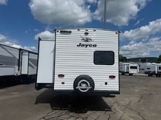 The Jayco Jay Flight SLX travel trailer is quite easy to own because it is lightweight for an easier towing experience. Built on a fully integrated A-frame with galvanized-steel, impact-resistant wheel wells, the Jay Flight SLX has quality at its very foundation. That quality continues on to the electric self-adjusting brakes, easy-lube hubs, Magnum Truss roof system, and LP quick connect. Some of what the mandatory Customer Value Package includes is backup camera prep, Keyed-Alike entry and baggage doors, marine grade exterior speakers, and an on-demand tankless water heater.
