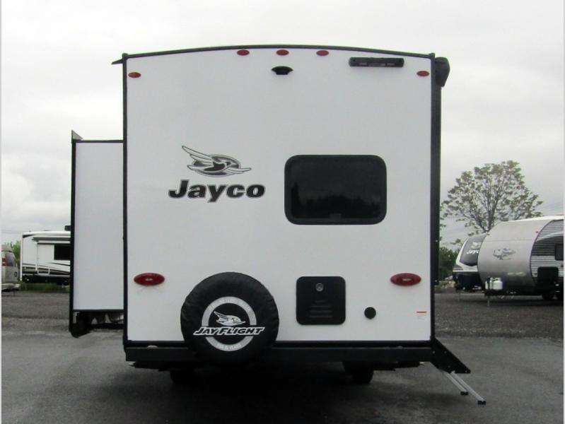 The Jayco Jay Flight SLX travel trailer is quite easy to own because it is lightweight for an easier towing experience. Built on a fully integrated A-frame with galvanized-steel, impact-resistant wheel wells, the Jay Flight SLX has quality at its very foundation. That quality continues on to the electric self-adjusting brakes, easy-lube hubs, Magnum Truss roof system, and LP quick connect. Some of what the mandatory Customer Value Package includes is backup camera prep, Keyed-Alike entry and baggage doors, marine grade exterior speakers, and an on-demand tankless water heater.