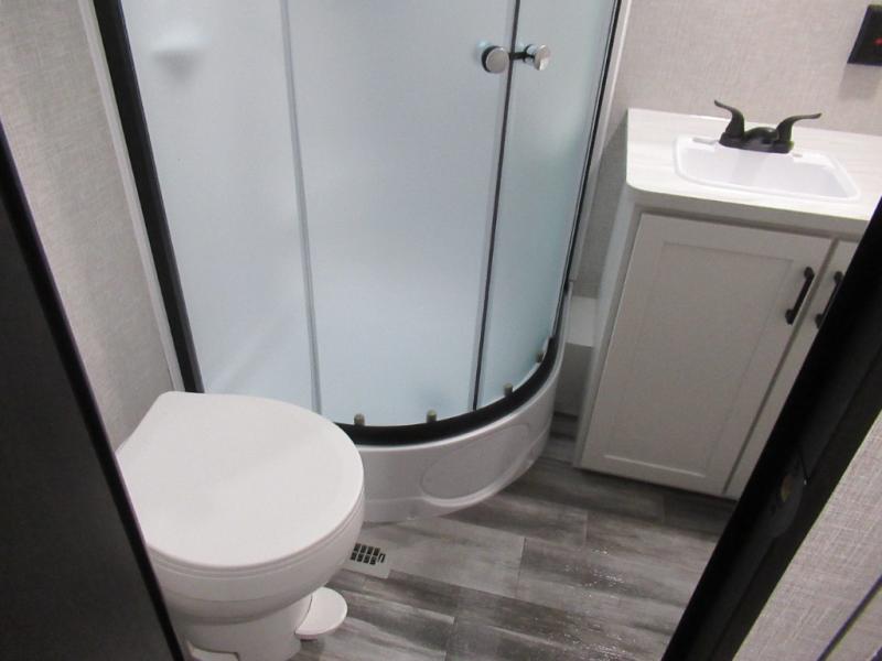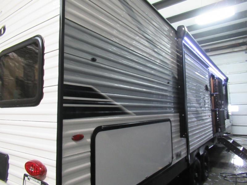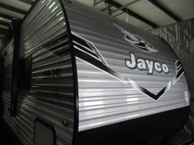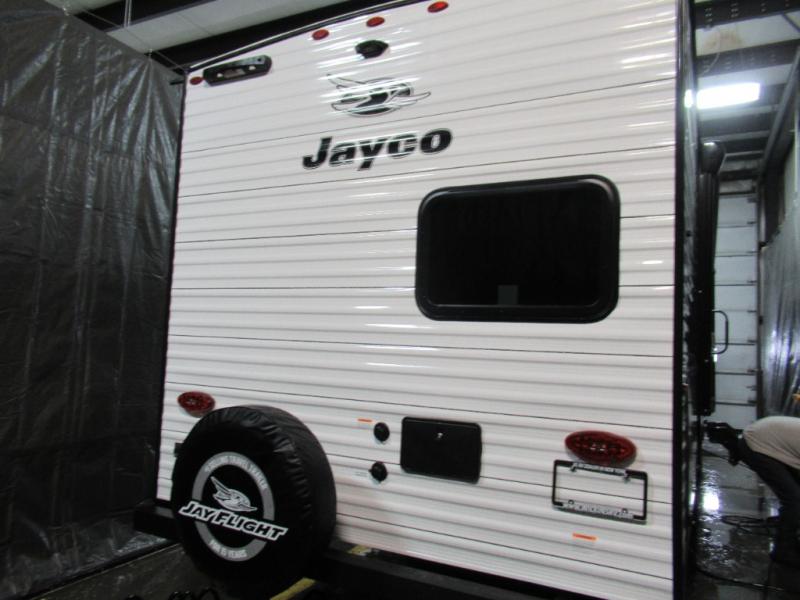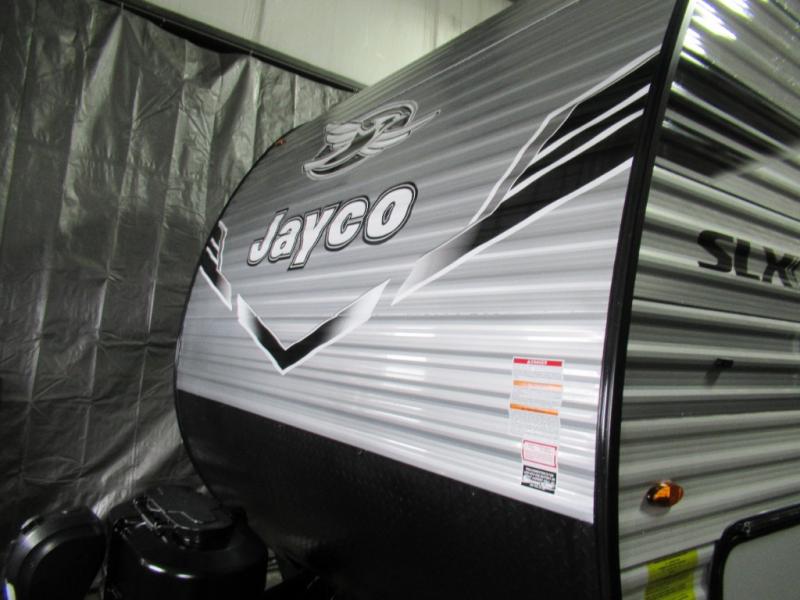 The Jayco Jay Flight SLX travel trailer is quite easy to own because it is lightweight for an easier towing experience. Built on a fully integrated A-frame with galvanized-steel, impact-resistant wheel wells, the Jay Flight SLX has quality at its very foundation. That quality continues on to the electric self-adjusting brakes, easy-lube hubs, Magnum Truss roof system, and LP quick connect. Some of what the mandatory Customer Value Package includes is backup camera prep, Keyed-Alike entry and baggage doors, marine grade exterior speakers, and an on-demand tankless water heater.