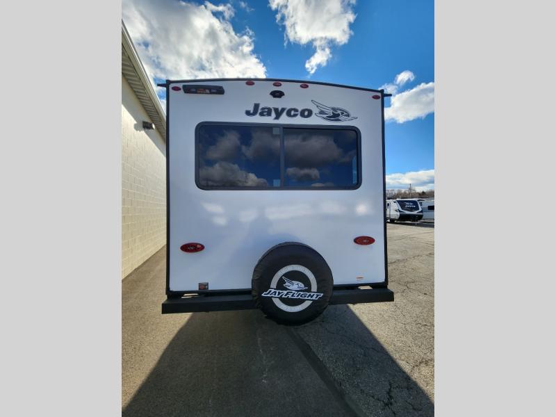 The Jayco Jay Flight SLX travel trailer is quite easy to own because it is lightweight for an easier towing experience. Built on a fully integrated A-frame with galvanized-steel, impact-resistant wheel wells, the Jay Flight SLX has quality at its very foundation. That quality continues on to the electric self-adjusting brakes, easy-lube hubs, Magnum Truss roof system, and LP quick connect. Some of what the mandatory Customer Value Package includes is backup camera prep, Keyed-Alike entry and baggage doors, marine grade exterior speakers, and an on-demand tankless water heater.