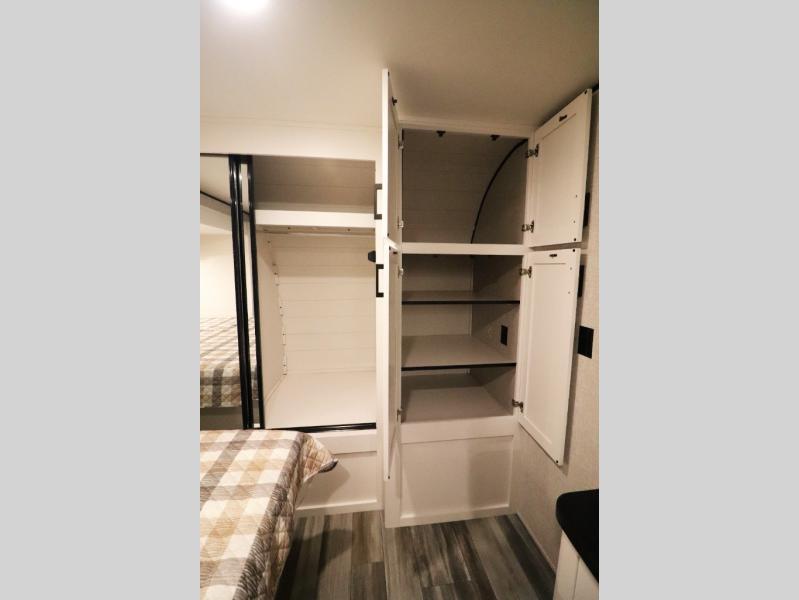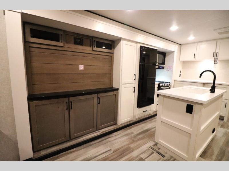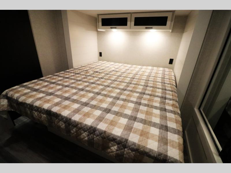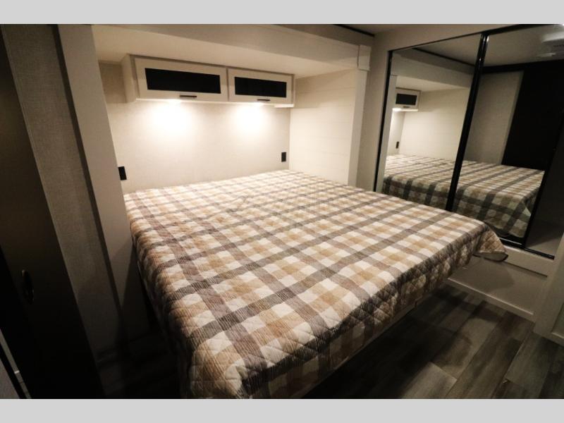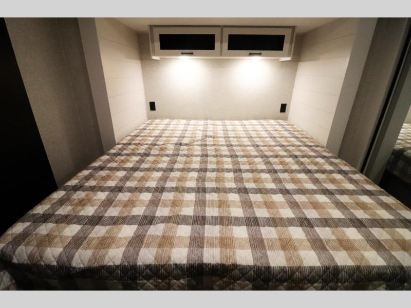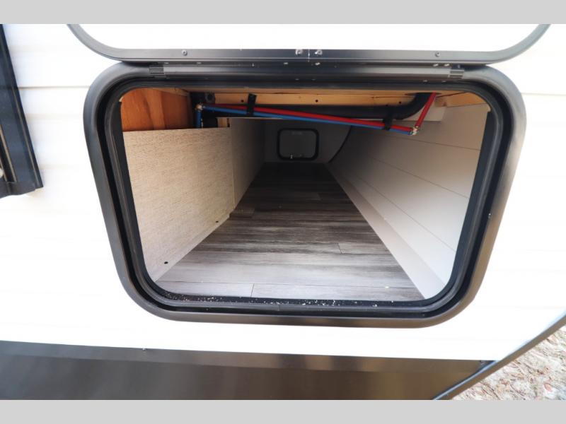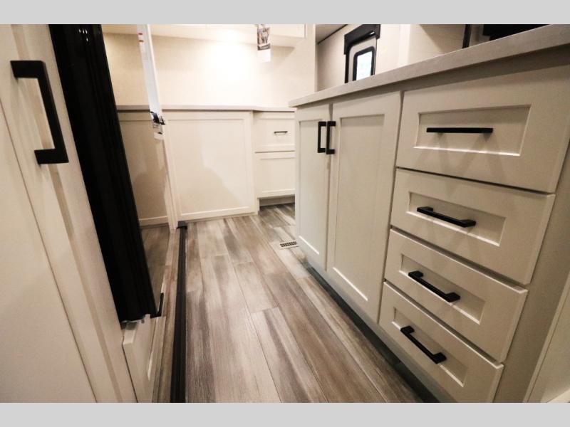 Enhanced Storage: Enjoy a neatly finished and lighted exterior pass-thru storage space, along with oversized, solid hardwood Maple cabinet doors and kitchen drawers inside, providing ample storage solutions for all your travel essentials.