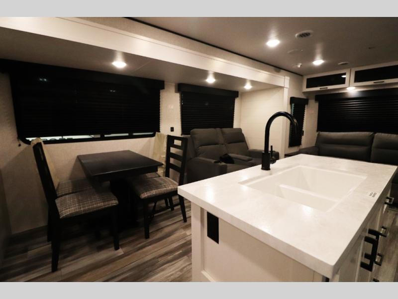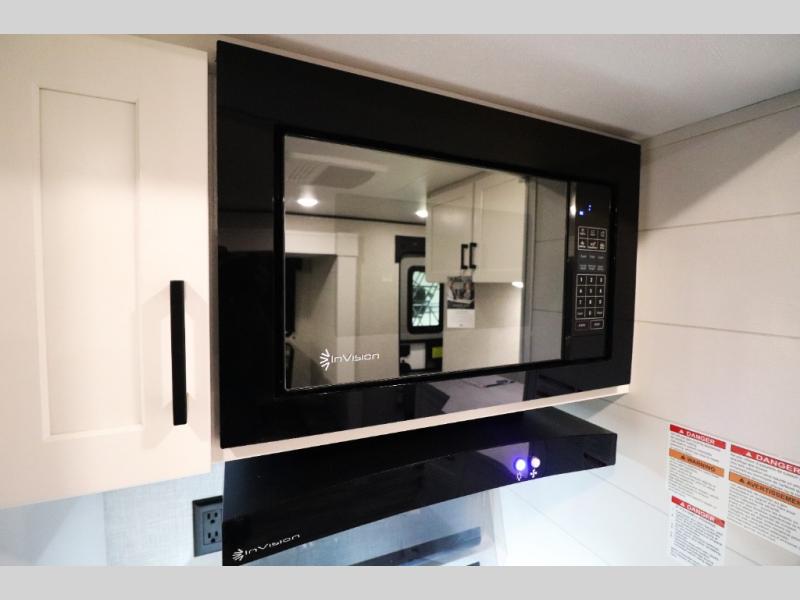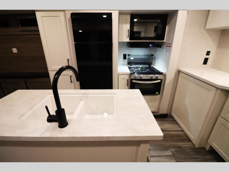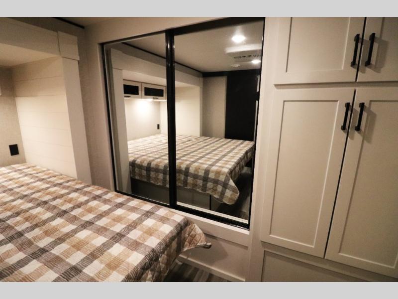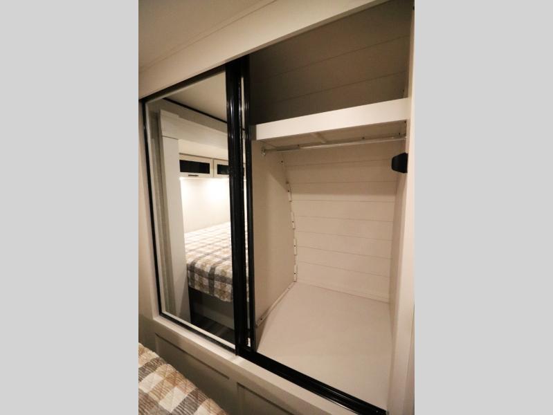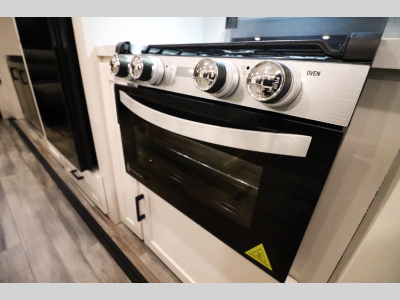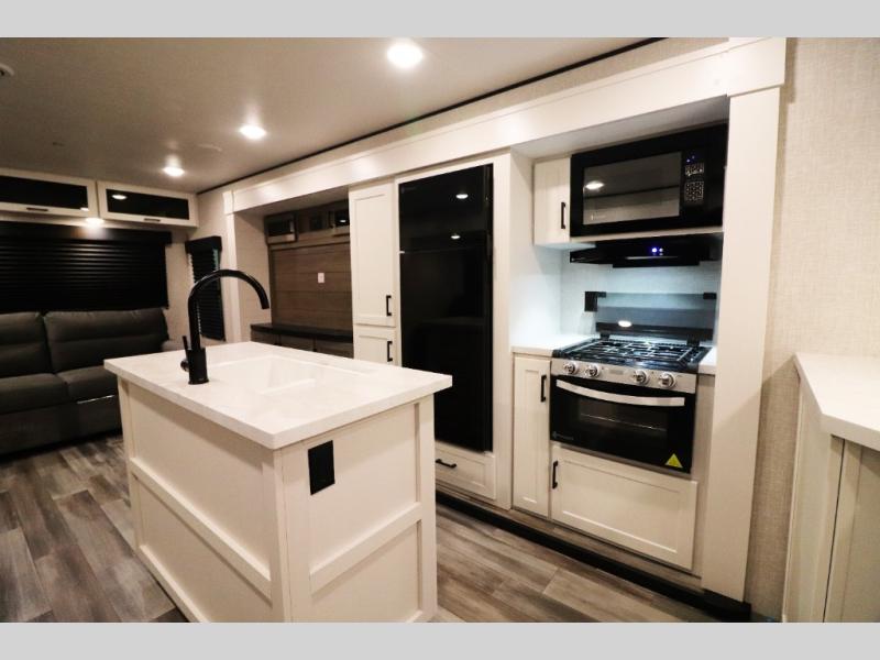 Enhanced Storage: Enjoy a neatly finished and lighted exterior pass-thru storage space, along with oversized, solid hardwood Maple cabinet doors and kitchen drawers inside, providing ample storage solutions for all your travel essentials.