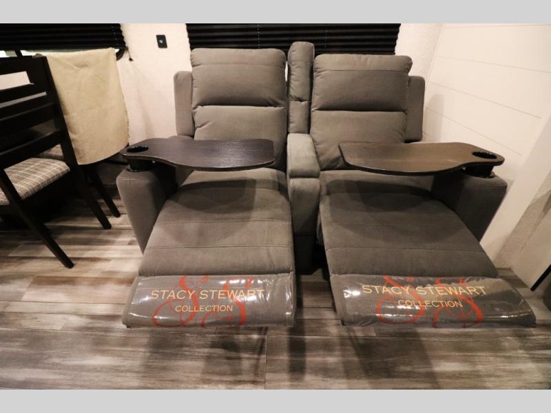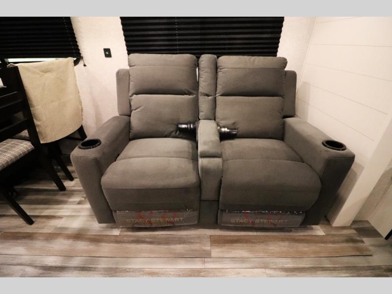 Comfortable Furnishings: Relax on jack-knife sofas featuring arm bolsters and pull-down center armrests with cupholders. Optional upgrades include tri-fold sofas and theater seating for added luxury.