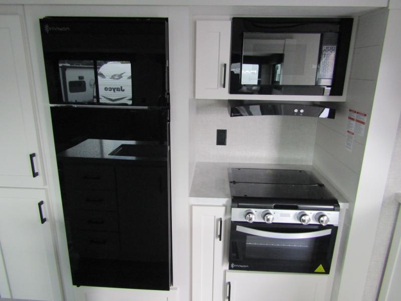The Jayco Jay Flight SLX travel trailer is quite easy to own because it is lightweight for an easier towing experience. Built on a fully integrated A-frame with galvanized-steel, impact-resistant wheel wells, the Jay Flight SLX has quality at its very foundation. That quality continues on to the electric self-adjusting brakes, easy-lube hubs, Magnum Truss roof system, and LP quick connect. Some of what the mandatory Customer Value Package includes is backup camera prep, Keyed-Alike entry and baggage doors, marine grade exterior speakers, and an on-demand tankless water heater.