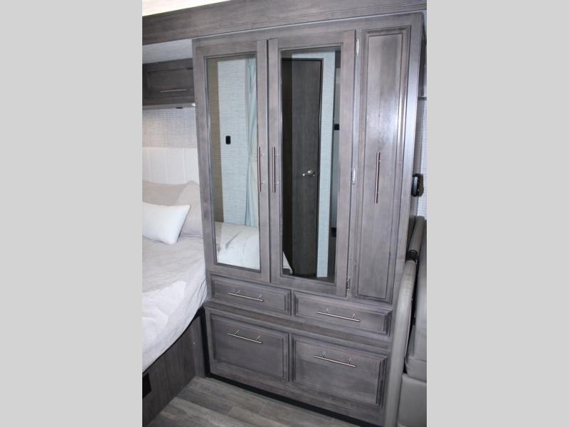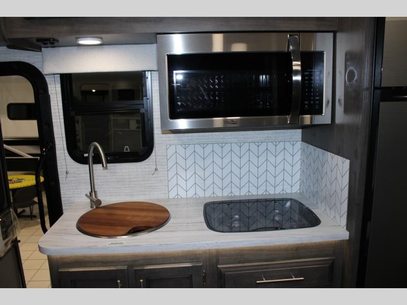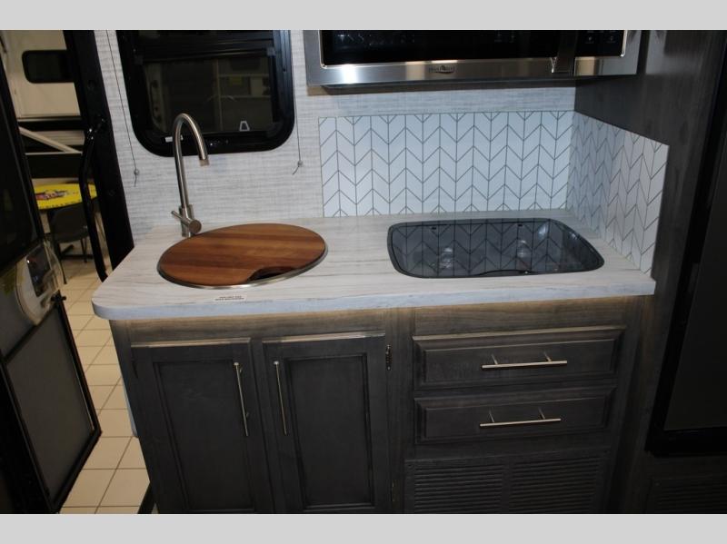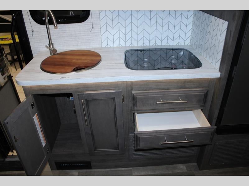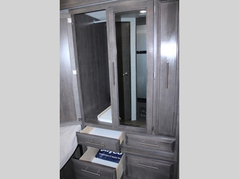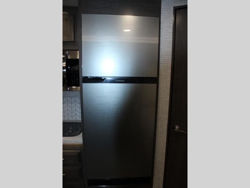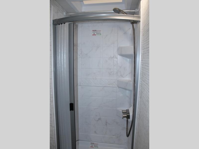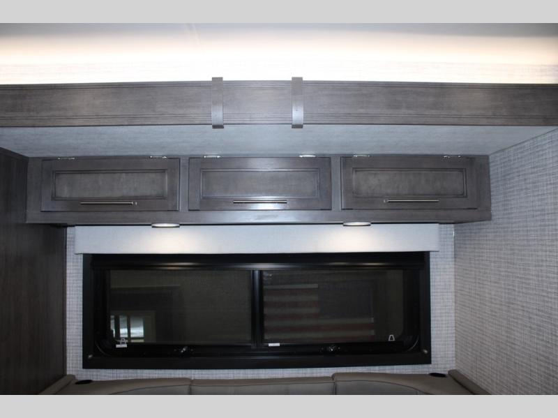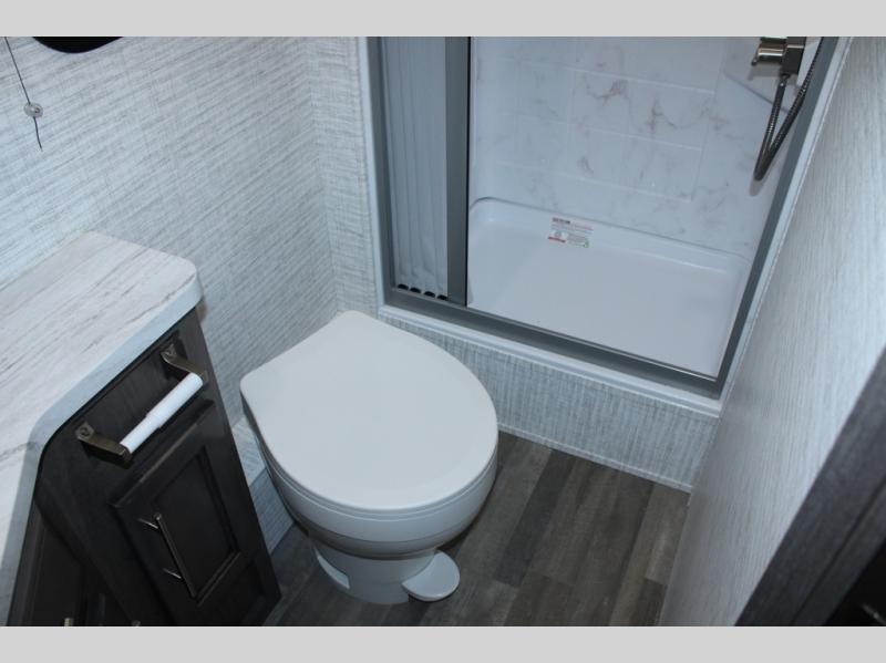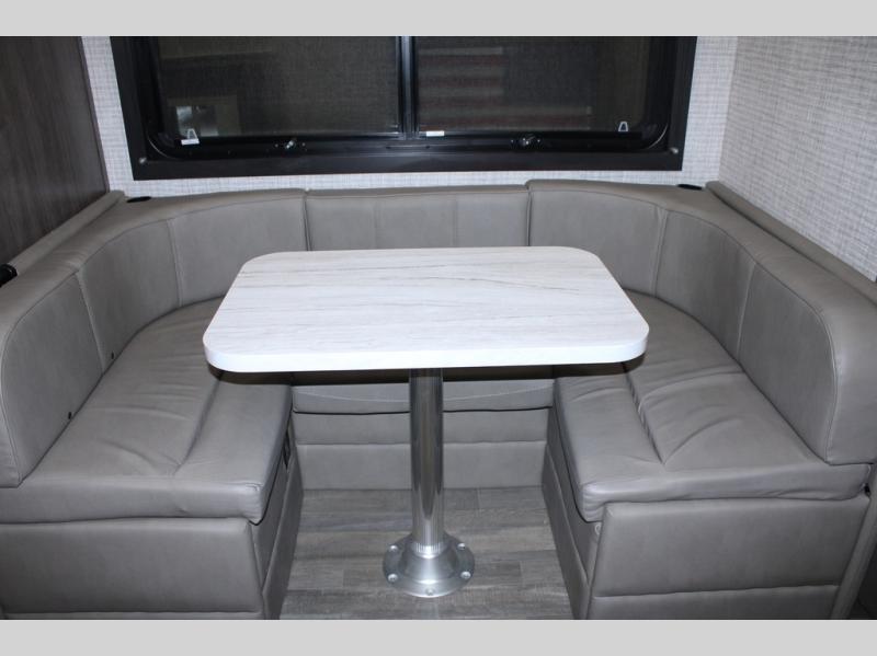 Head across the states in this comfortable coach that can sleep five each night. You will enjoy an RV queen bed just like you have at home, and your guests can sleep on the U-shaped dinette and cab-over bunk. If you're not needing the overhead bunk, just choose the optional front entertainment center with a 32" LED HDTV, and the dinette can also be optioned out for theater seating to make this a couples coach. You can prepare all your meals on the two burner drop-in cooktop, or use the convection microwave. The flip-up counter will provide more counter space, and all your perishables can be stored in the 10 cu. ft. 12V refrigerator.