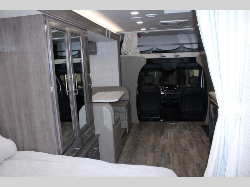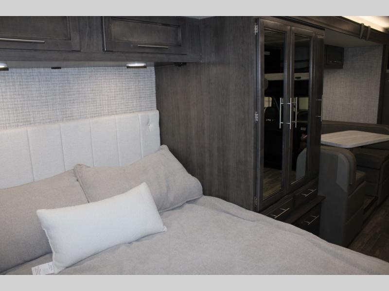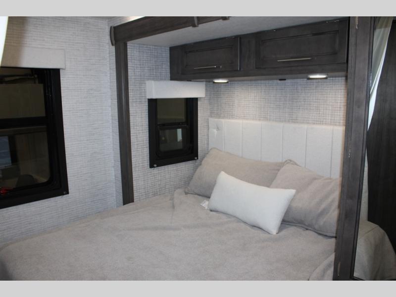 Each Melbourne Class C diesel motorhome by Jayco features durable Stronghold VBL lamination, bead-foam insulation, and a seamless front cap that resists wear and tear from the elements. The 2L V4 twin turbo 211HP diesel engine with 332 ft. lb. torque will power your trips near and far, and the Mercedes-Benz chassis is ultra durable. There are seatbelts in all designated seating locations, and the captain's seats swivel around so they can become a part of the living area once parked. You'll appreciate the LP generator on board, as well as a 13,500 BTU A/C and a 30,000 BTU furnace to keep you comfortable year around. The interior of the Melbourne will have you feeling right at home with high-intensity LED lights, an 83" interior height with a padded vinyl ceiling, hardwood cabinet doors and drawers, and more!