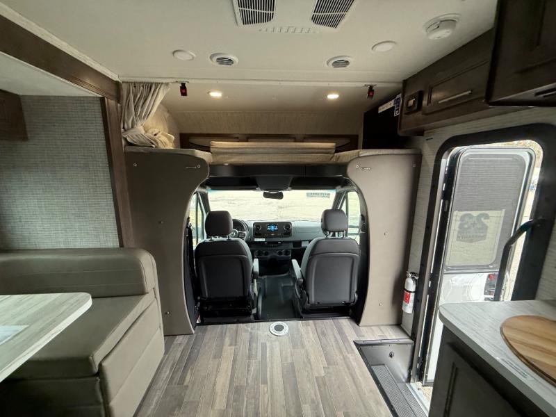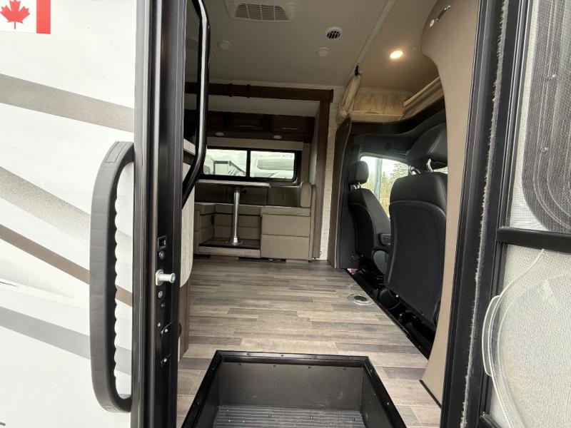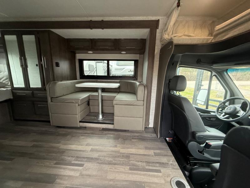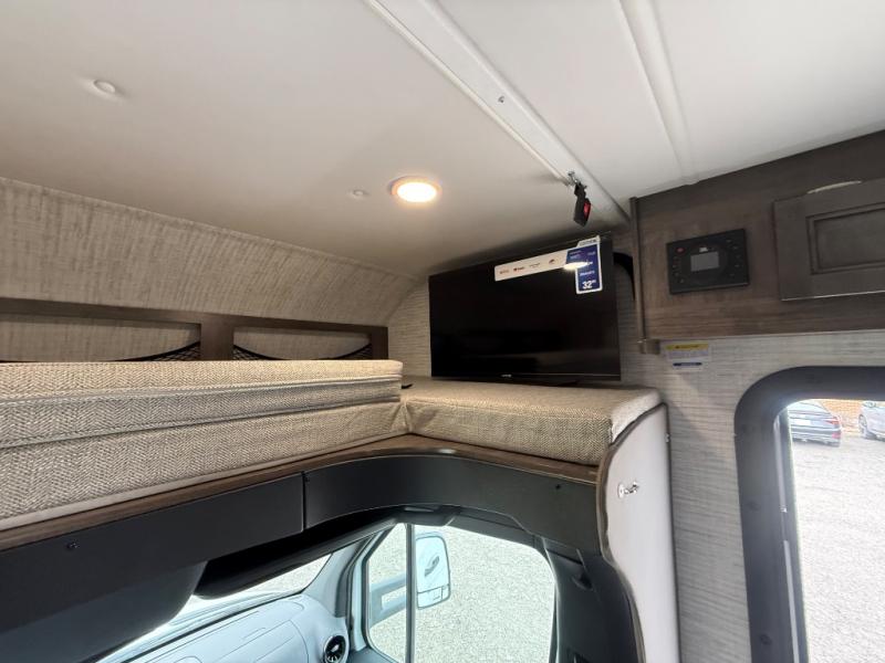 Each Melbourne Class C diesel motorhome by Jayco features durable Stronghold VBL lamination, bead-foam insulation, and a seamless front cap that resists wear and tear from the elements. The 2L V4 twin turbo 211HP diesel engine with 332 ft. lb. torque will power your trips near and far, and the Mercedes-Benz chassis is ultra durable. There are seatbelts in all designated seating locations, and the captain's seats swivel around so they can become a part of the living area once parked. You'll appreciate the LP generator on board, as well as a 13,500 BTU A/C and a 30,000 BTU furnace to keep you comfortable year around. The interior of the Melbourne will have you feeling right at home with high-intensity LED lights, an 83" interior height with a padded vinyl ceiling, hardwood cabinet doors and drawers, and more!