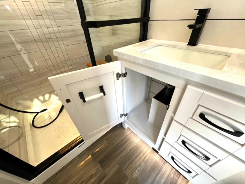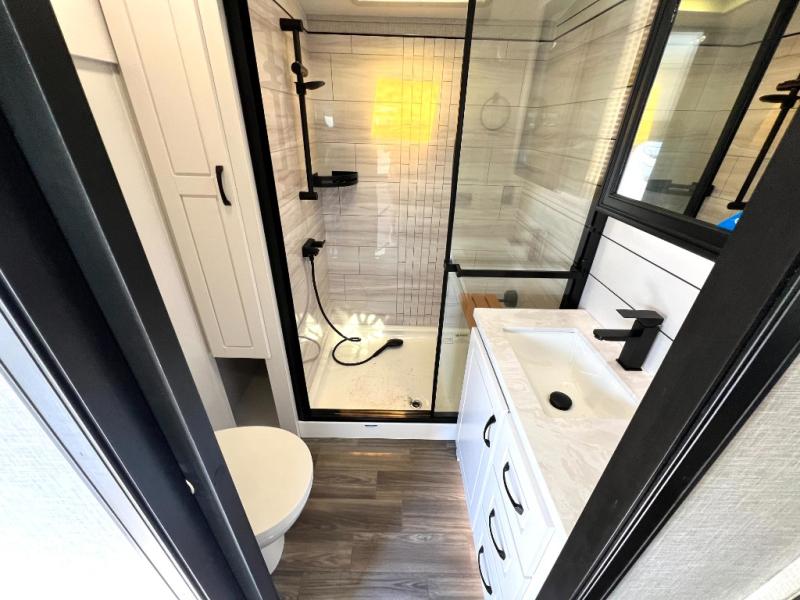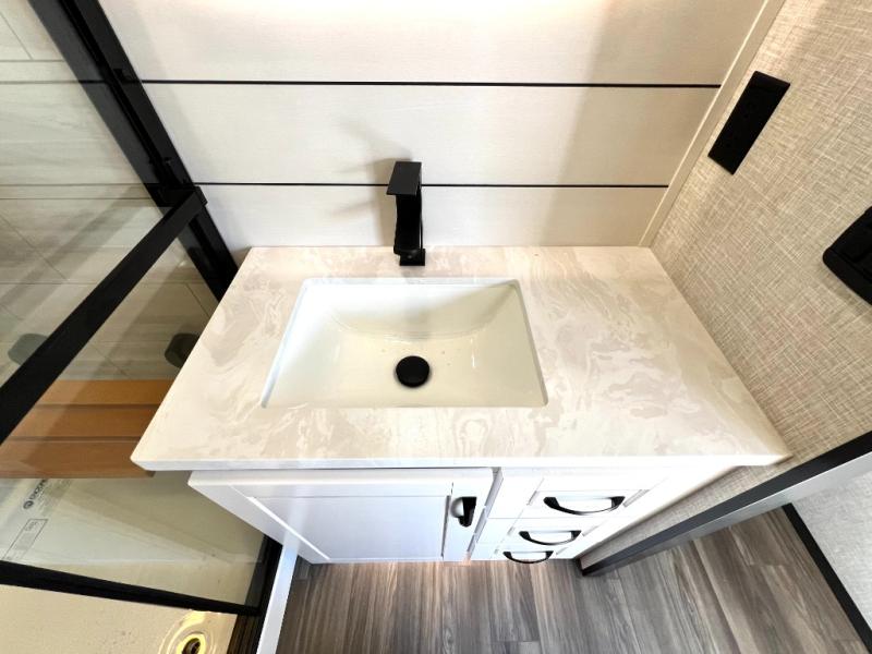 With any North Point fifth wheel by Jayco you begin with a strong foundation with a custom frame, designed and sized specifically to best support each unit. Constructed with Stronghold VBL™ aluminum framed, vacuum bond laminated walls and the Magnum Truss™ XL6™ roof system with a one-piece, seamless roof material, which is the strongest tested roof in the industry. The 5-Star Handling package is included with Uniroyal tires, a MORryde rubber pin box, Dexter axles with Nev-R-Adjust brakes, MORryde CRE-3000 rubberized suspension and wet bolt fasteners and bronze bushings. The interior has handcrafted hardwood glazed doors and drawers, vinyl flooring throughout, an integrated under-mount sink in the main bathroom, plus so much more you just have to see one to believe it all!