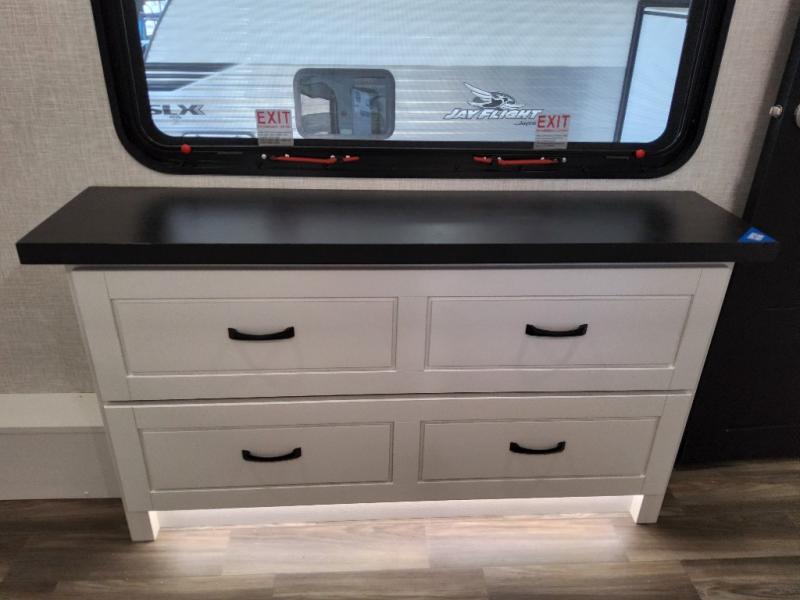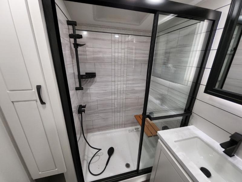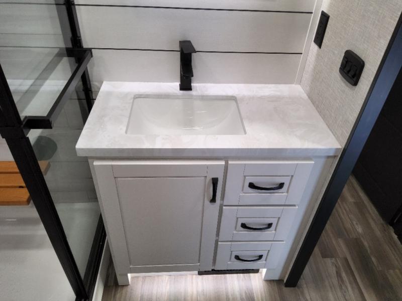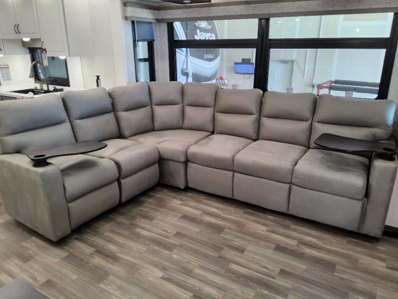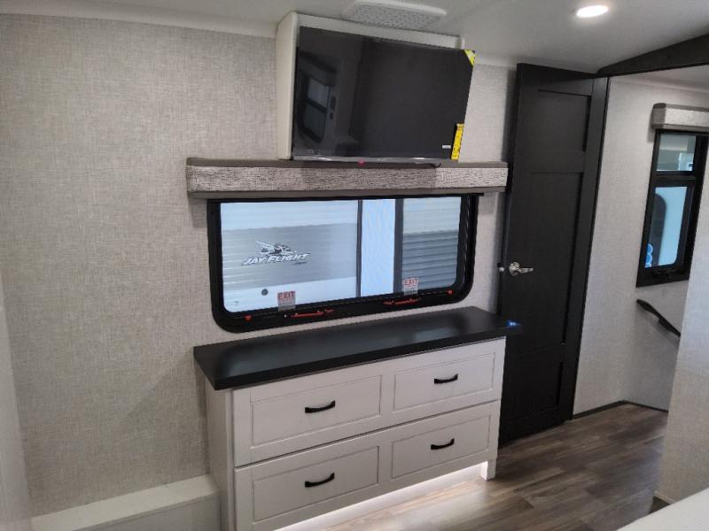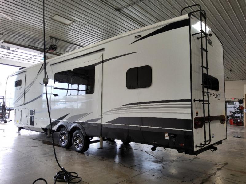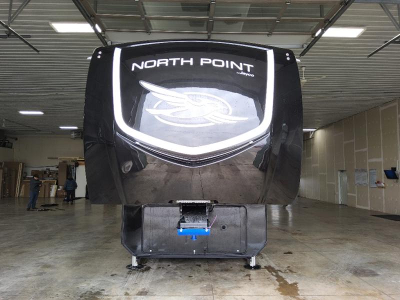 With any North Point fifth wheel by Jayco you begin with a strong foundation with a custom frame, designed and sized specifically to best support each unit. Constructed with Stronghold VBL™ aluminum framed, vacuum bond laminated walls and the Magnum Truss™ XL6™ roof system with an Alpha roof membrane system, which is the strongest tested roof in the industry. The 5-Star Handling package is included with Uniroyal tires, a MORryde rubber pin box, Dexter axles with Nev-R-Adjust brakes, MORryde CRE-3000 rubberized suspension and wet bolt fasteners and bronze bushings. The interior has handcrafted hardwood glazed doors and drawers, vinyl flooring throughout, an integrated under-mount sink in the main bathroom, plus so much more you just have to see one to believe it all!