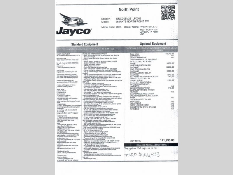 | Awning Info | 15' and 16' Electric w/Integrated LED Lights |