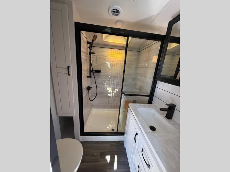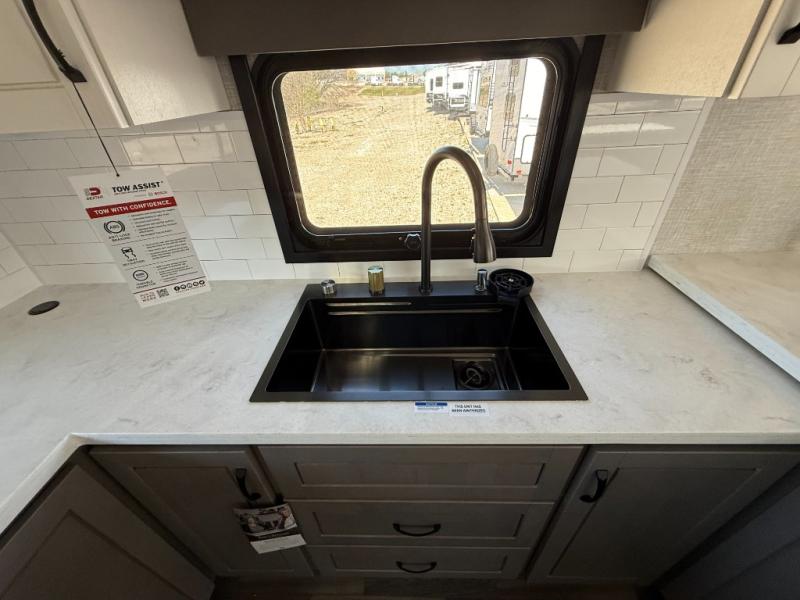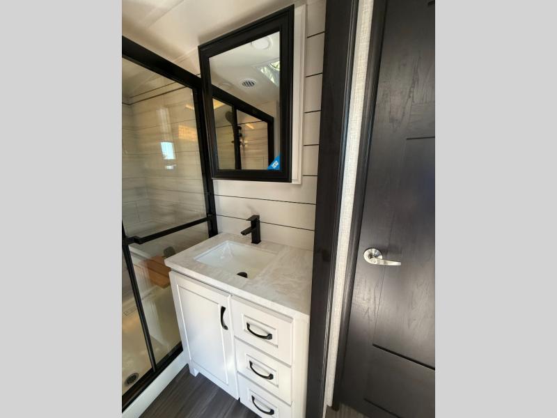 With any North Point fifth wheel by Jayco you begin with a strong foundation with a custom frame, designed and sized specifically to best support each unit. Constructed with Stronghold VBL™ aluminum framed, vacuum bond laminated walls and the Magnum Truss™ XL6™ roof system with a one-piece, seamless roof material, which is the strongest tested roof in the industry. The 5-Star Handling package is included with Uniroyal tires, a MORryde rubber pin box, Dexter axles with Nev-R-Adjust brakes, MORryde CRE-3000 rubberized suspension and wet bolt fasteners and bronze bushings. The interior has handcrafted hardwood glazed doors and drawers, vinyl flooring throughout, an integrated under-mount sink in the main bathroom, plus so much more you just have to see one to believe it all!