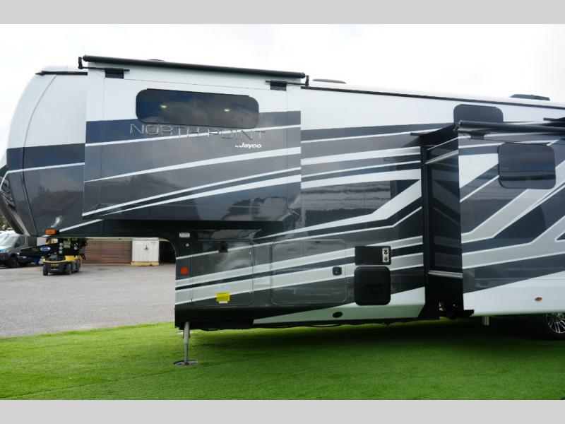 Experience the perfect balance of residential luxury and road-ready performance in the 2025 Jayco North Point 377RLBH Fifth Wheel. Designed for families, remote workers, and adventure-seekers alike, this spacious four-slide fifth wheel offers high-end finishes, smart design, and all the comforts of home—no matter where you travel.