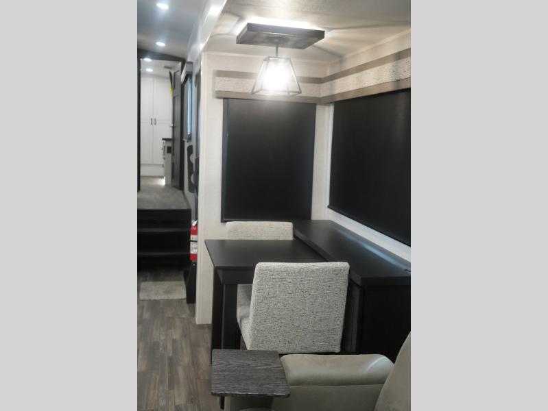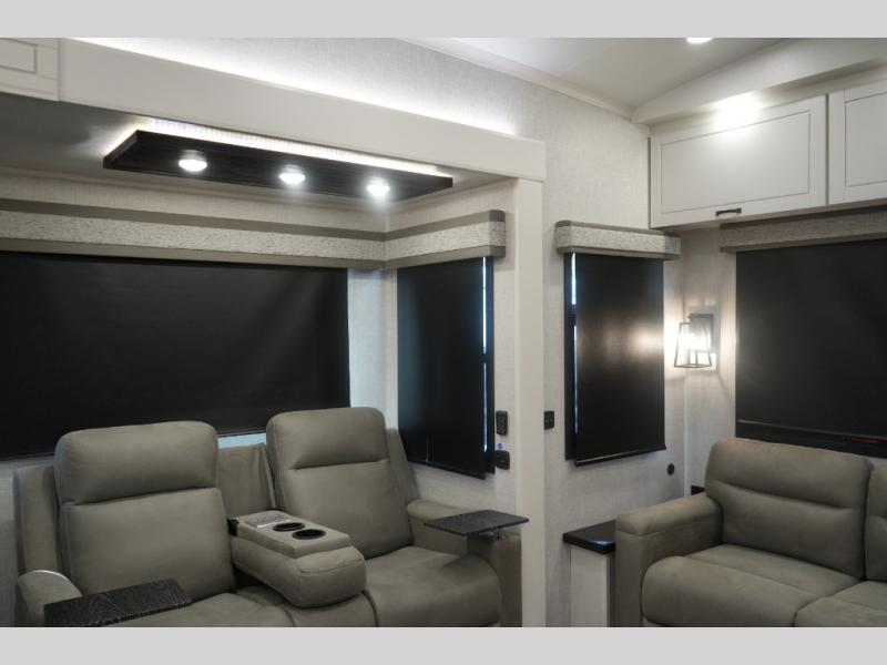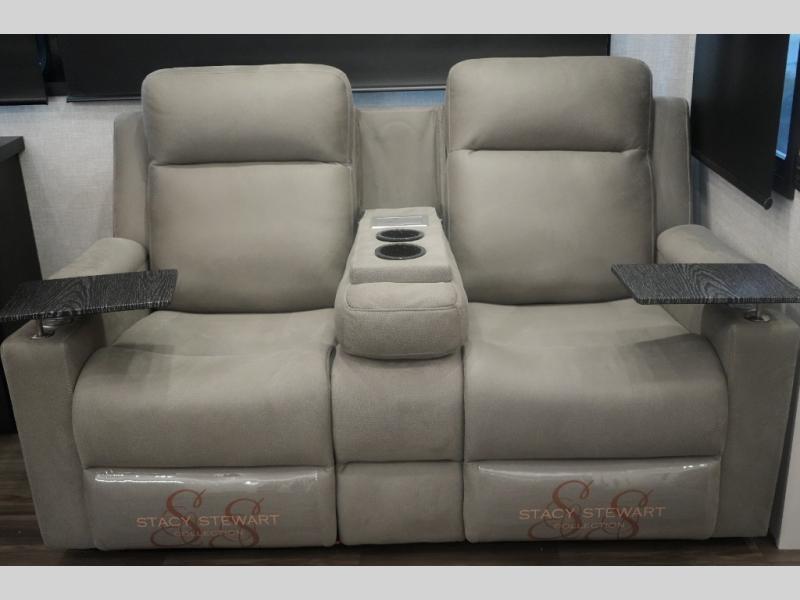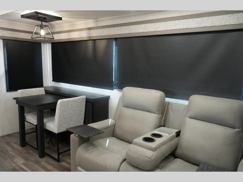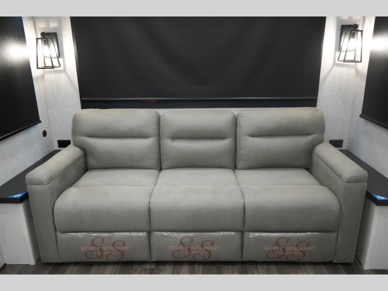 Spacious Living Area – Featuring theater seating, tri-fold sofa, and a free-standing table for dining or game nights.