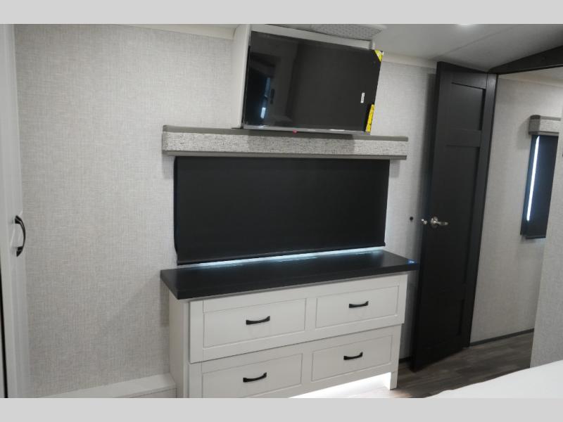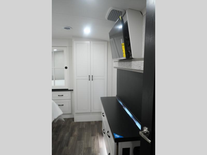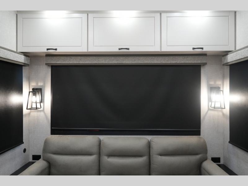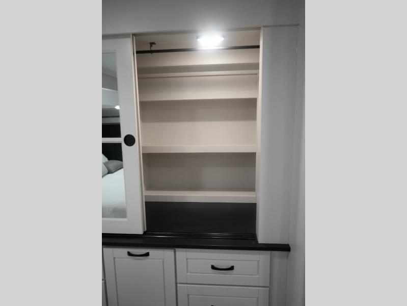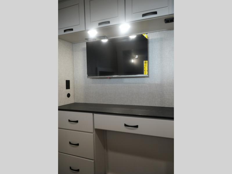 Multi-Purpose Middle Bonus Room – Use it as a home office, extra bedroom, or second living area. Includes a desk with TV mount, sofa with removable table, flip-up bunk, and closet.