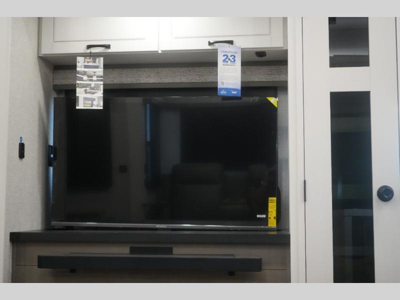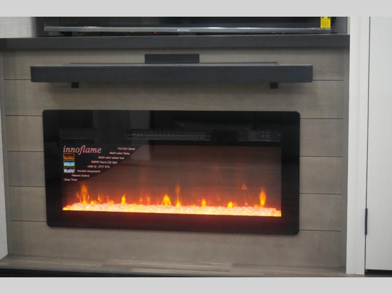 Entertainment Center – Enjoy a 50” Smart LED HDTV with HDMI connectivity, premium sound system with subwoofer, and a cozy fireplace for cool evenings.
