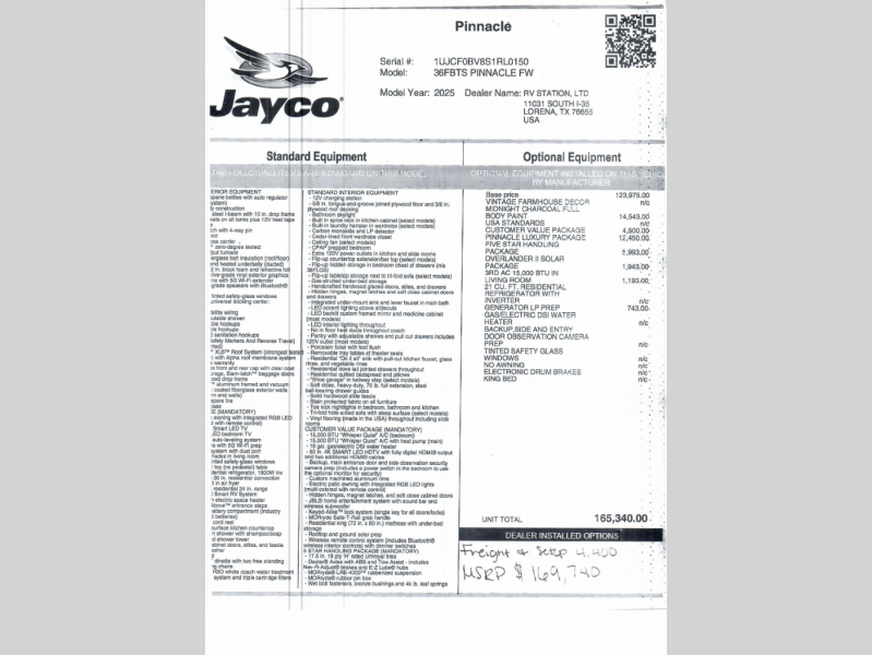New 2025 Jayco Pinnacle 36FBTS Fifth Wheel