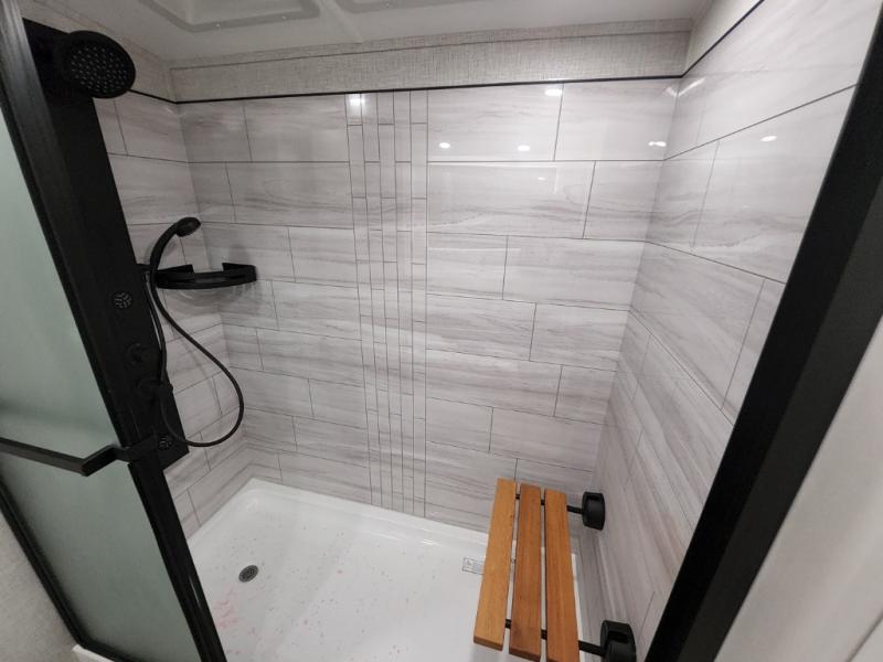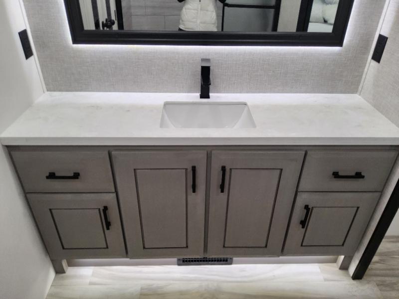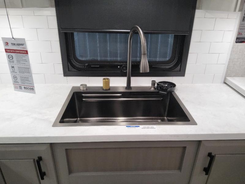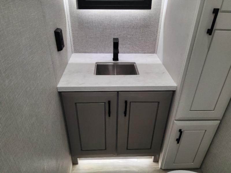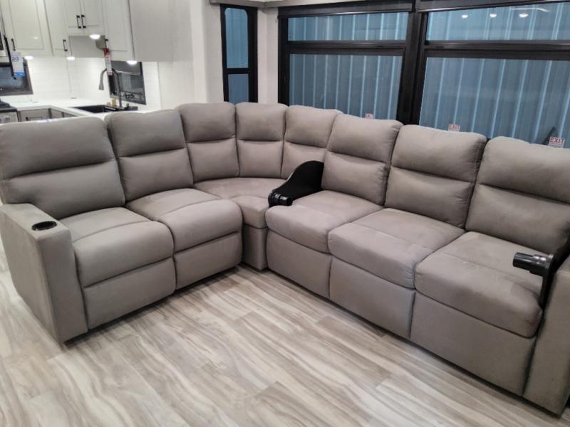 Each Pinnacle fifth wheel features Stronghold VBL lamination for the lightest, yet strongest construction in the RV industry. Add that to the Magnum Truss XL6 roof system and Climate Shield zero-degree tested weather protection and you'll be enjoying your fifth wheel for years to come. Some of the exterior conveniences you will appreciate are the Keyed-Alike lock system, the fully enclosed, universal docking center, and the 6-point hydraulic auto-leveling system for quick and easy set up. The 5 Star Handling Package will make towing a fifth wheel a walk in the park, and the two Whisper Quiet A/C units will keep you comfortable during the hot summer months. Inside, you'll enjoy the residential "Do it all" sink with pull-out kitchen faucet, glass rinse, and vegetable rinse, the handcrafted hardwood glazed cabinetry, the vinyl flooring throughout, plus many more comforts. There is even a central vacuum system, a wireless remote control system, USB ports throughout, plus many more conveniences to make each trip enjoyable.