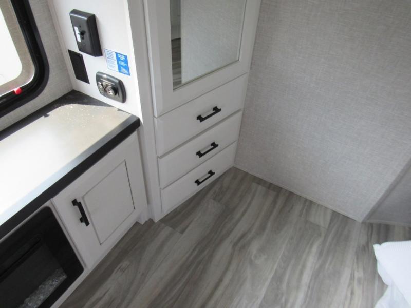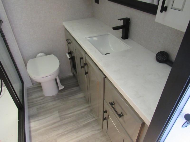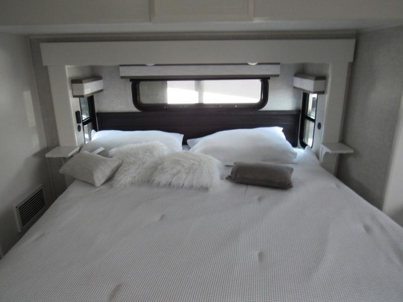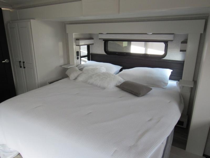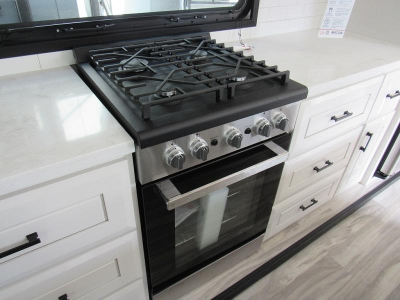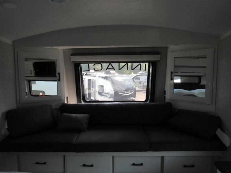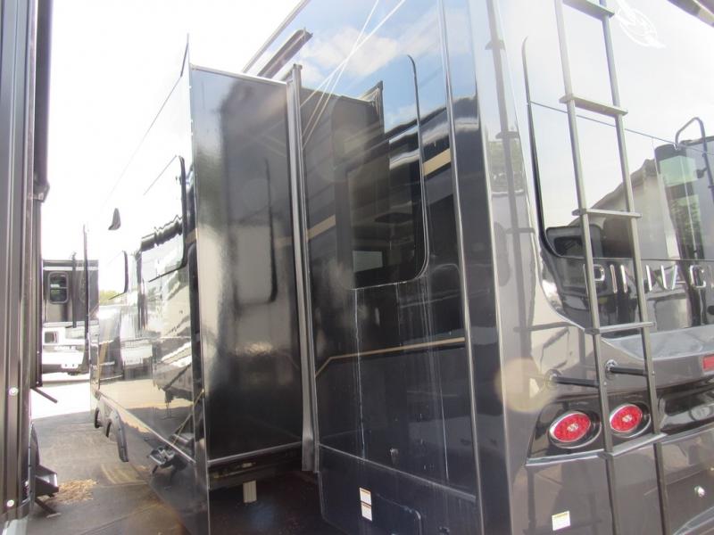 Each Pinnacle fifth wheel features Stronghold VBL lamination for the lightest, yet strongest construction in the RV industry. Add that to the Magnum Truss XL6 roof system and Climate Shield zero-degree tested weather protection and you'll be enjoying your fifth wheel for years to come. Some of the exterior conveniences you will appreciate are the Keyed-Alike lock system, the fully enclosed, universal docking center, and the 6-point hydraulic auto-leveling system for quick and easy set up. The 5 Star Handling Package will make towing a fifth wheel a walk in the park, and the two Whisper Quiet A/C units will keep you comfortable during the hot summer months. Inside, you'll enjoy the residential "Do it all" sink with pull-out kitchen faucet, glass rinse, and vegetable rinse, the handcrafted hardwood glazed cabinetry, the vinyl flooring throughout, plus many more comforts. There is even a central vacuum system, a wireless remote control system, USB ports throughout, plus many more conveniences to make each trip enjoyable.