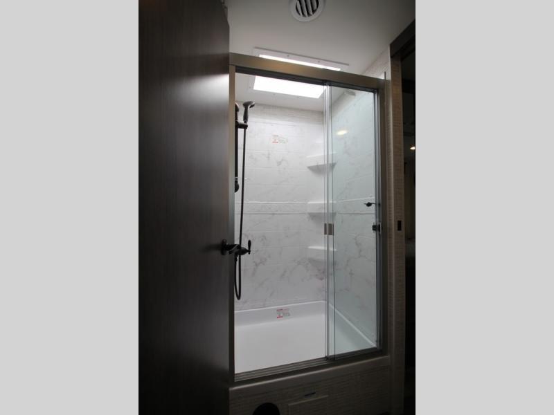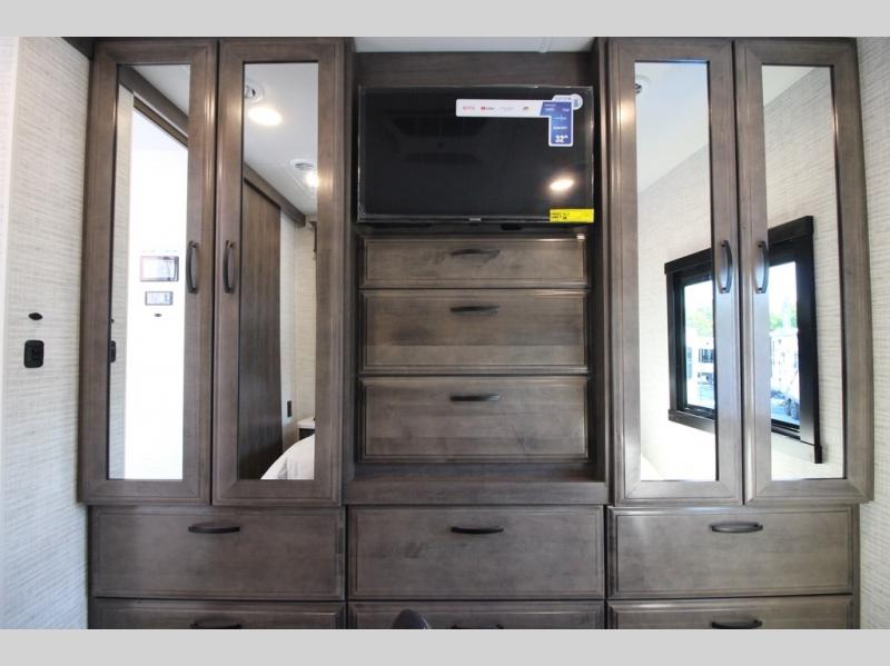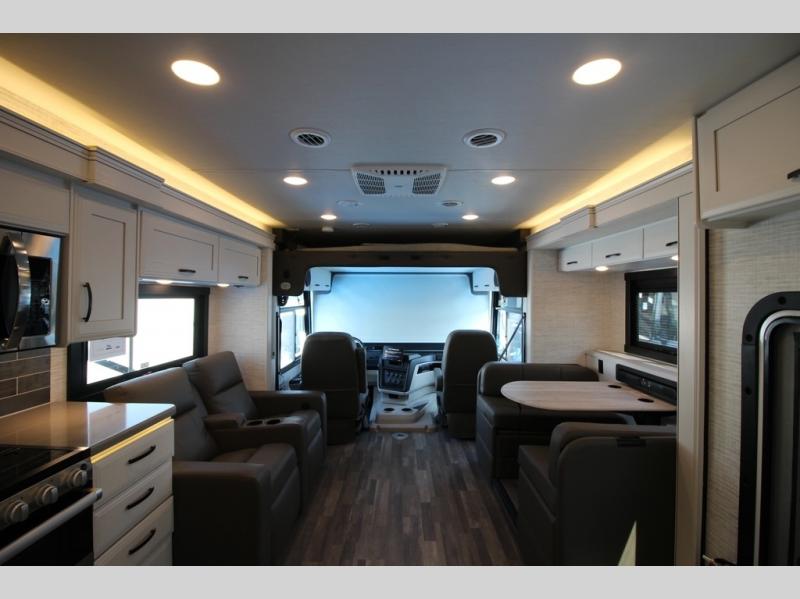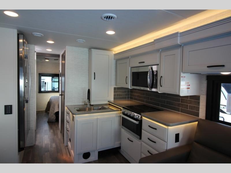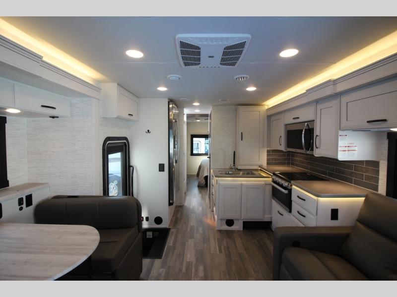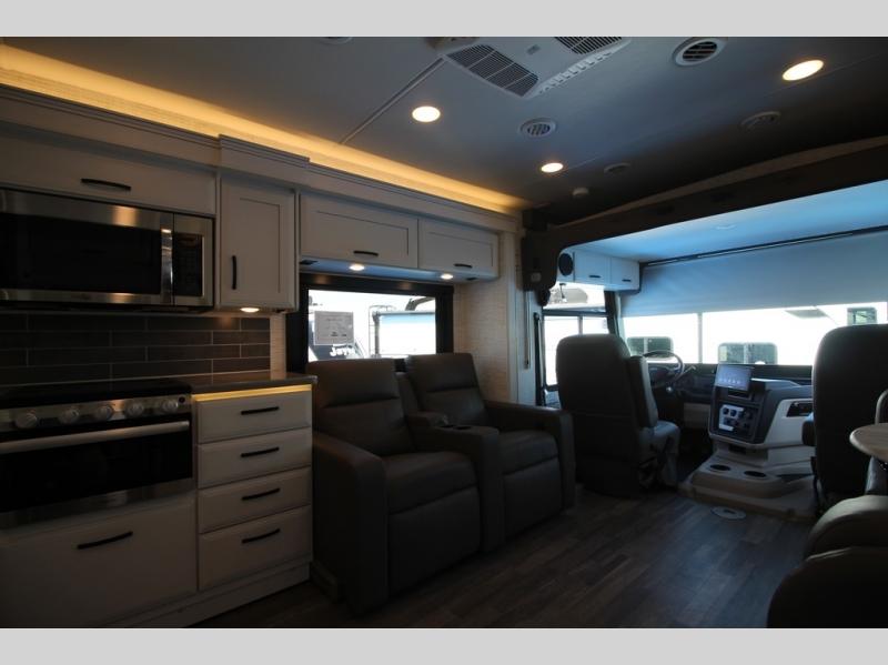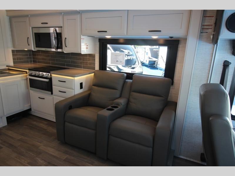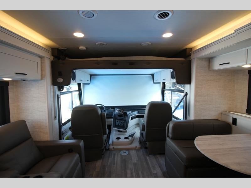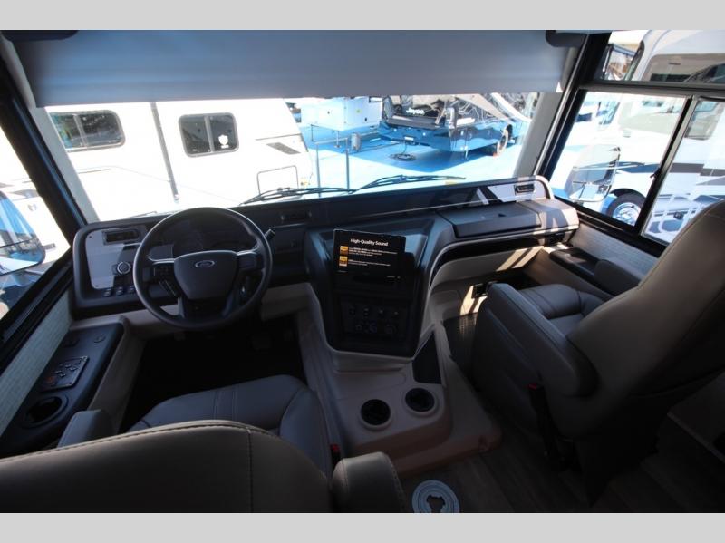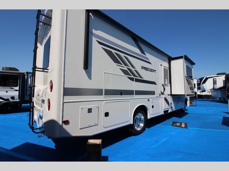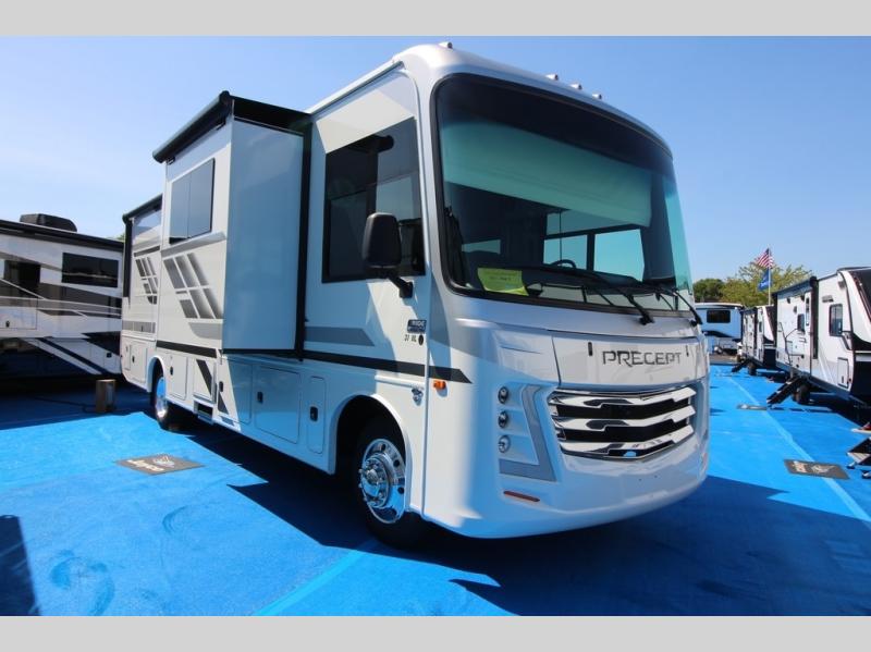 The Jayco Precept Class A gas motorhome comes with some features that you'll only find on a Jayco product, like the JRIDE PLUS which offers you a powerful blend of precise handling and renowned stability on the road and the Firefly total coach control system which allows you to control your coach's operations from just about anywhere with your phone. You'll find two-point lap seatbelts in all designated seating locations, and the one-piece, seamless fiberglass front and rear caps resist wear and tear over the years. The Precept also offers you the lightest yet strongest construction in the industry with the Stronghold VBL lamination on the roof, floor, and sidewalls. You'll also be very pleased to find a 120" panoramic windshield, automatic hydraulic leveling jacks, and a 5,500W generator with auto-gen start.