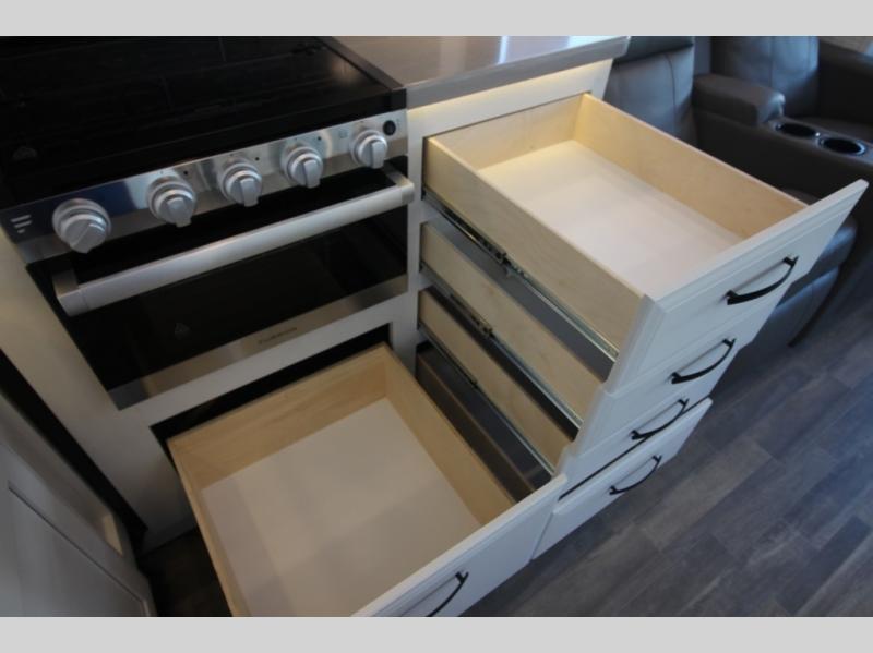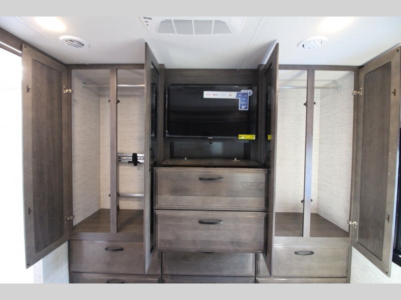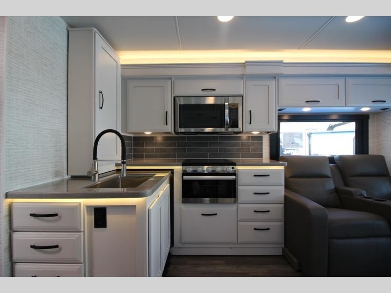 The fun is just about to begin with this Precept Class A gas motorhome! You will have an amazing night of sleep on the RV king bed slide back in the private bedroom, and the bedroom also offers you an LED TV to watch while you relax. The separated bathroom gives you a chance to have two people getting ready at the same time, and the opposing slides in the main living area provide some extra room for lounging or socializing. As you drive down the road, you'll appreciate the removable cockpit table that sits in between the swivel cab seats, and you can create some extra sleeping space by adding the optional drop-down overhead bunk in the cab.