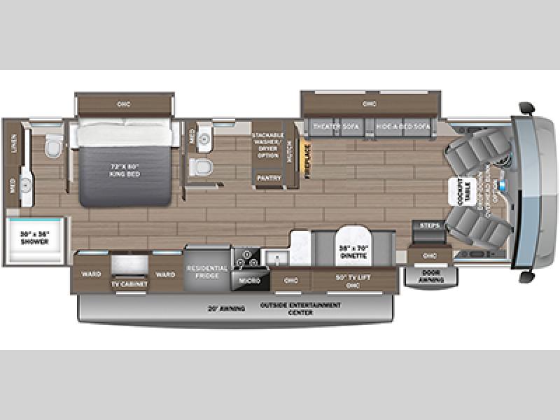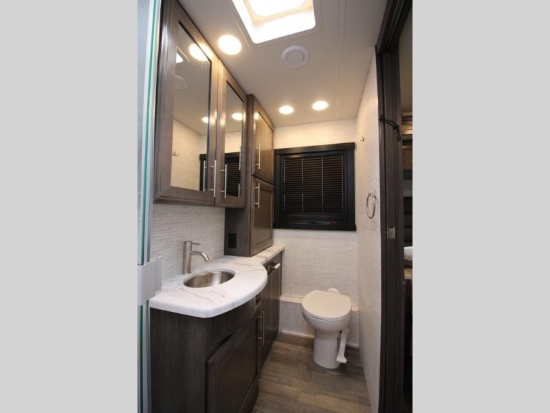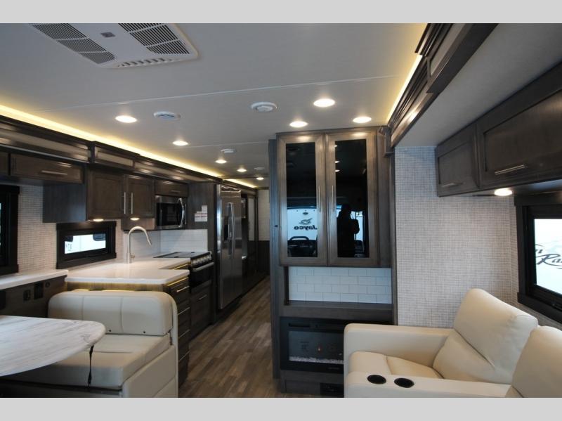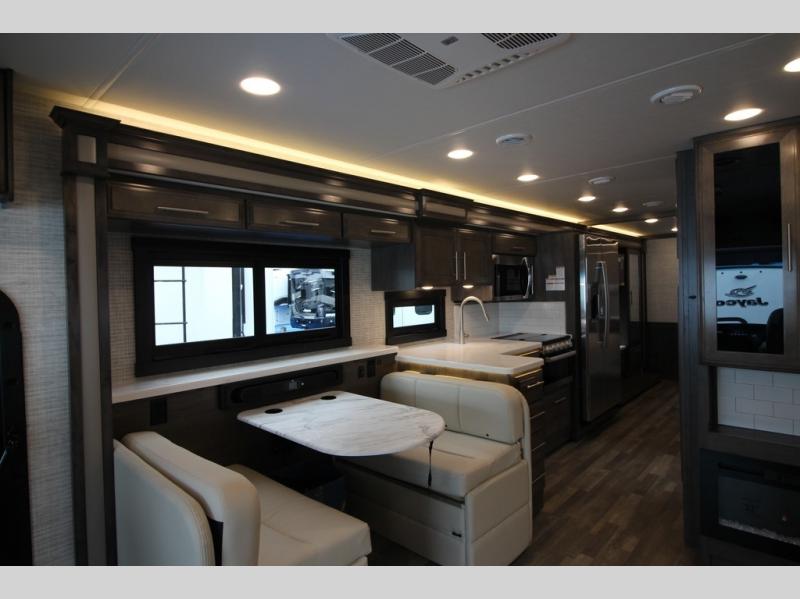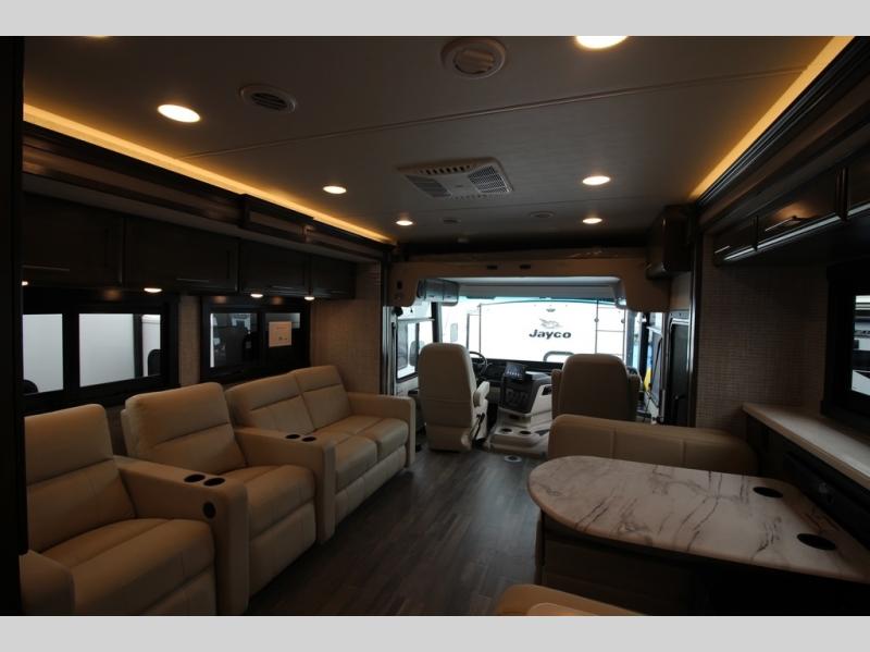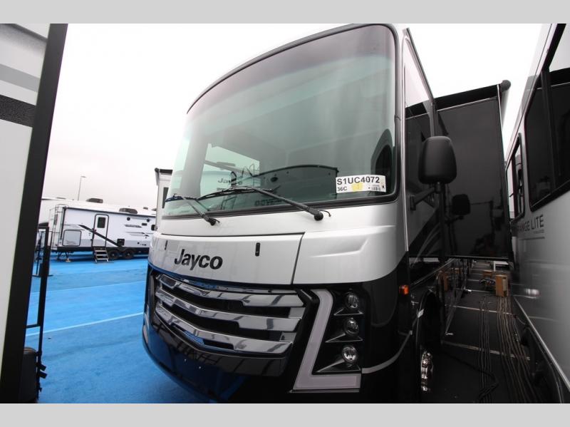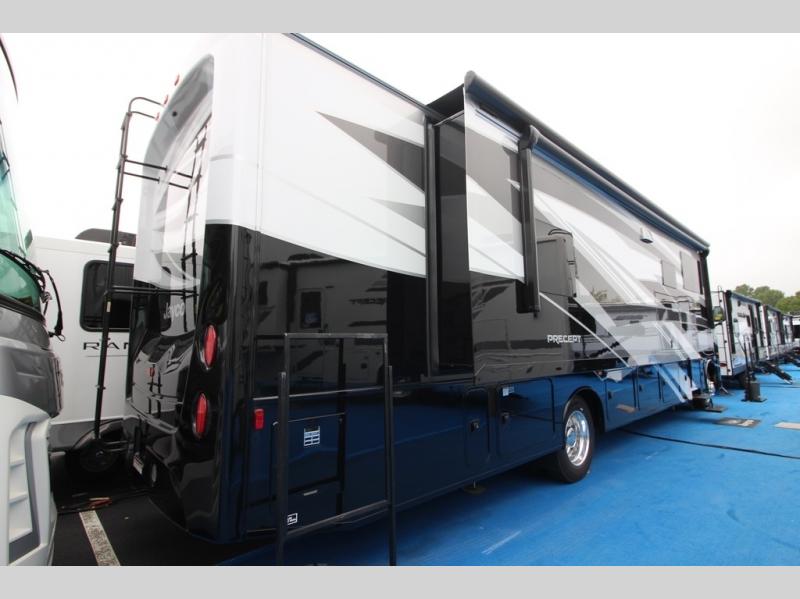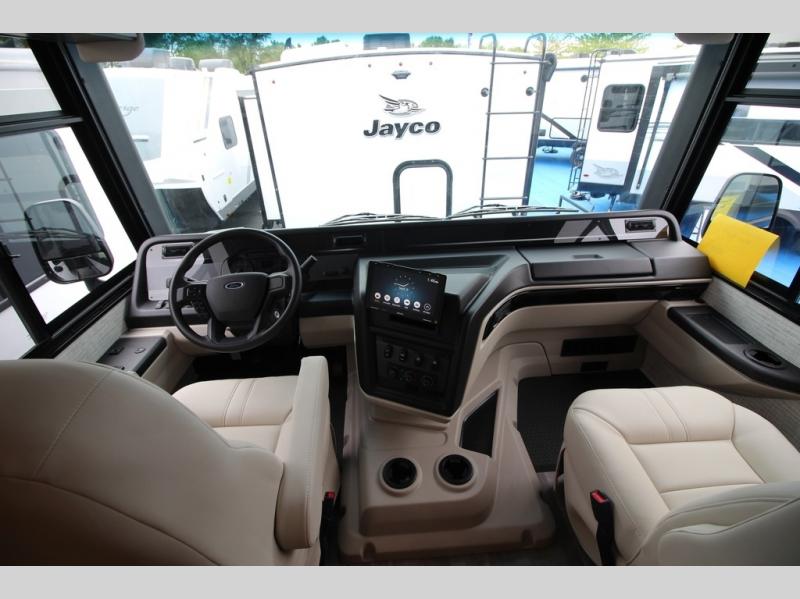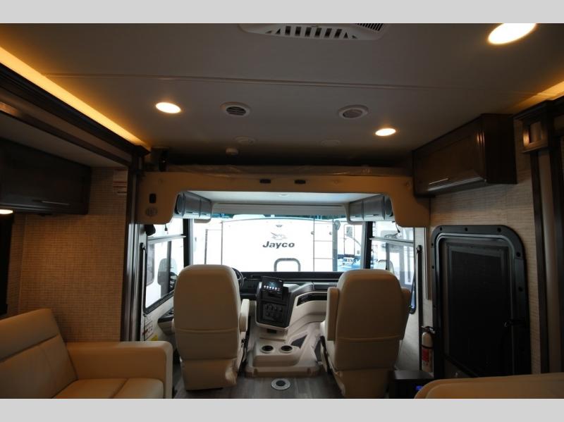The Jayco Precept Class A gas motorhome comes with some features that you'll only find on a Jayco product, like the JRIDE PLUS which offers you a powerful blend of precise handling and renowned stability on the road and the Firefly total coach control system which allows you to control your coach's operations from just about anywhere with your phone. You'll find two-point lap seatbelts in all designated seating locations, and the one-piece, seamless fiberglass front and rear caps resist wear and tear over the years. The Precept also offers you the lightest yet strongest construction in the industry with the Stronghold VBL lamination on the roof, floor, and sidewalls. You'll also be very pleased to find a 120" panoramic windshield, automatic hydraulic leveling jacks, and a 5,500W generator with auto-gen start.