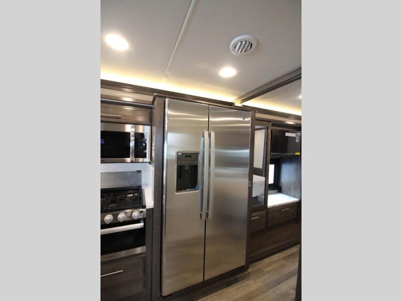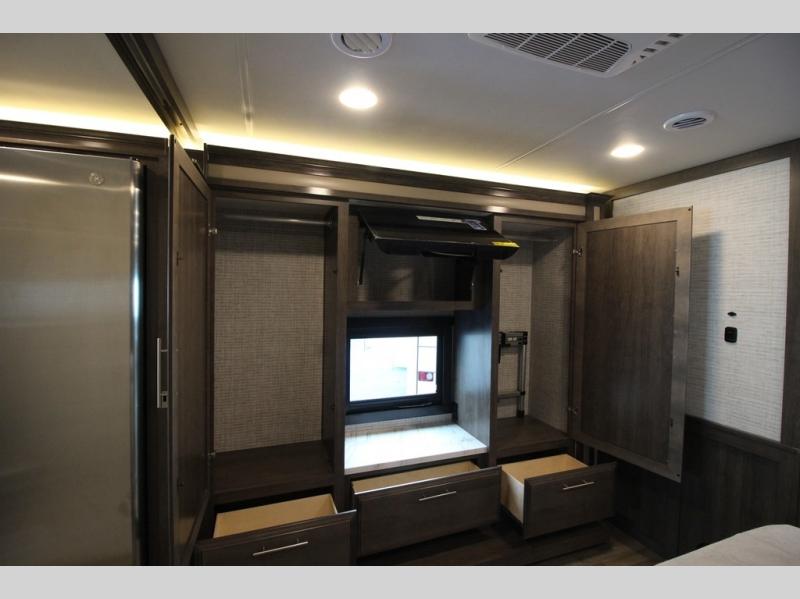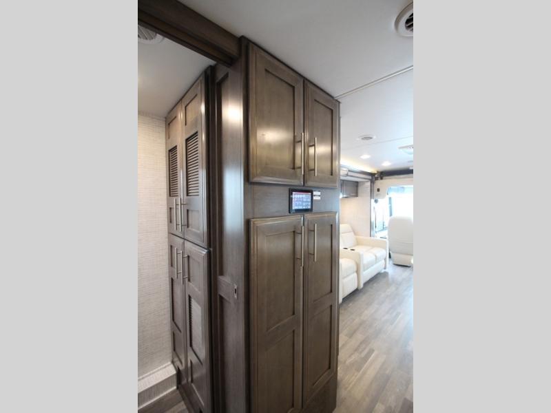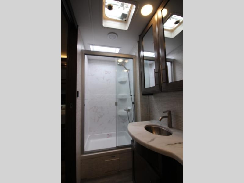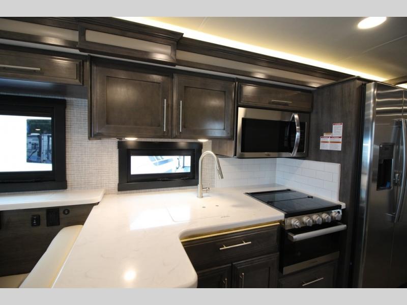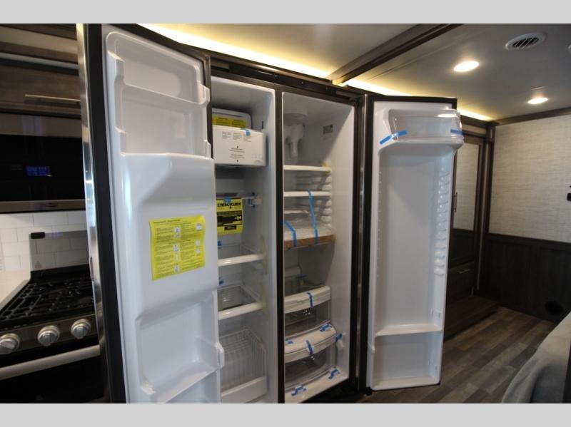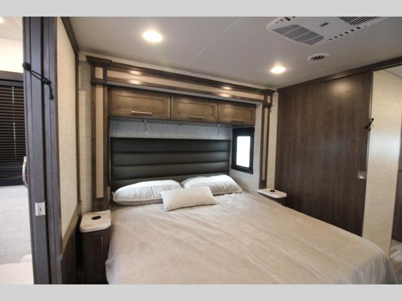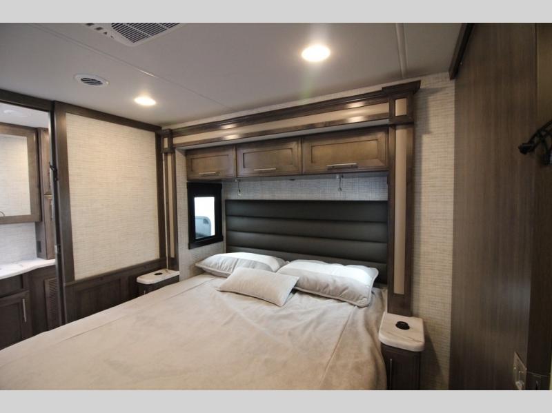 Grab your luggage, your beach towel, your hiking boots, and your favorite people and head out to a new scenic destination in this Precept Class A gas motorhome! The first thing you'll notice about this coach is how spacious it is. With a full-wall slide, a bedroom slide, and a living room slide, you'll be able to live freely. The other thing that will catch your eye is the full bathroom in the back and the half bathroom in the middle. You'll easily be able to rest on the hide-a-bed sofa, theater sofa, and booth dinette after a tiresome day, and if you want to just go straight to bed, you can lie down on the king-size bed. You can also provide your group with some extra sleeping space by adding the optional drop-down overhead bunk above the cab.