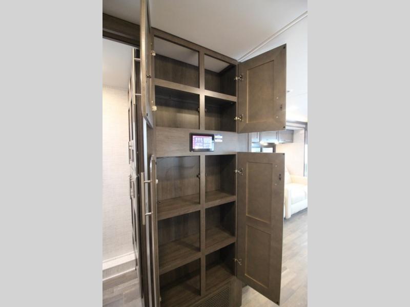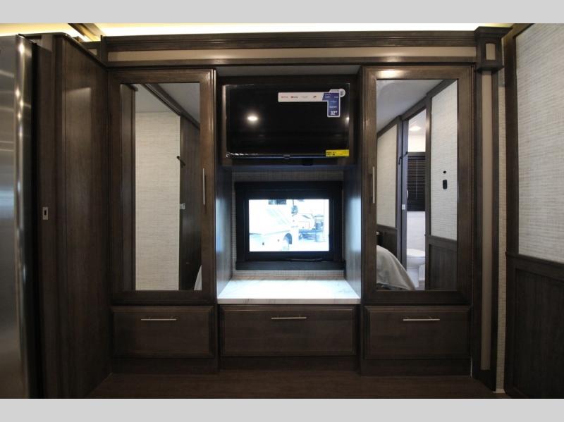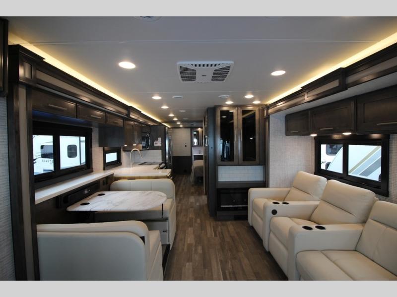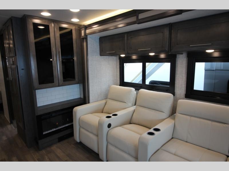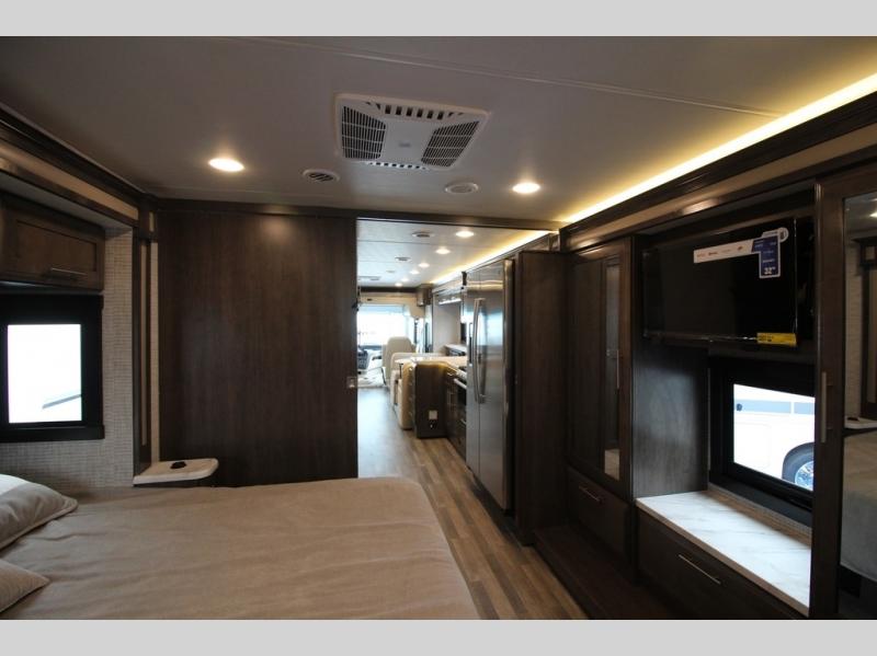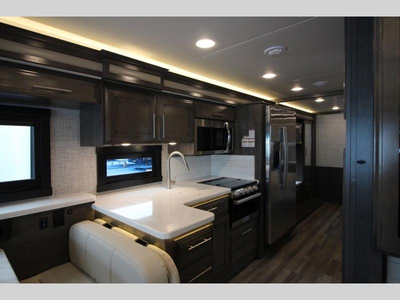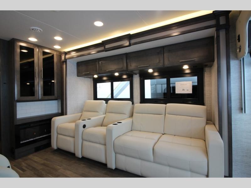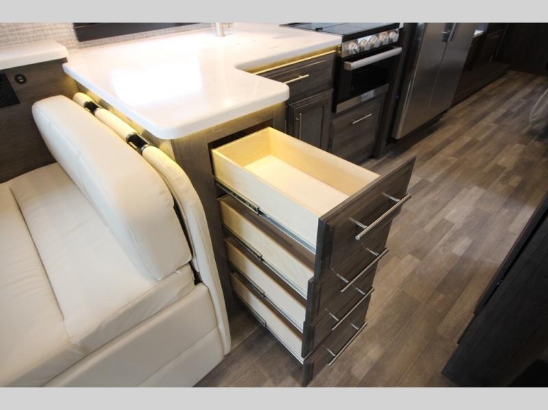 Grab your luggage, your beach towel, your hiking boots, and your favorite people and head out to a new scenic destination in this Precept Class A gas motorhome! The first thing you'll notice about this coach is how spacious it is. With a full-wall slide, a bedroom slide, and a living room slide, you'll be able to live freely. The other thing that will catch your eye is the full bathroom in the back and the half bathroom in the middle. You'll easily be able to rest on the hide-a-bed sofa, theater sofa, and booth dinette after a tiresome day, and if you want to just go straight to bed, you can lie down on the king-size bed. You can also provide your group with some extra sleeping space by adding the optional drop-down overhead bunk above the cab.