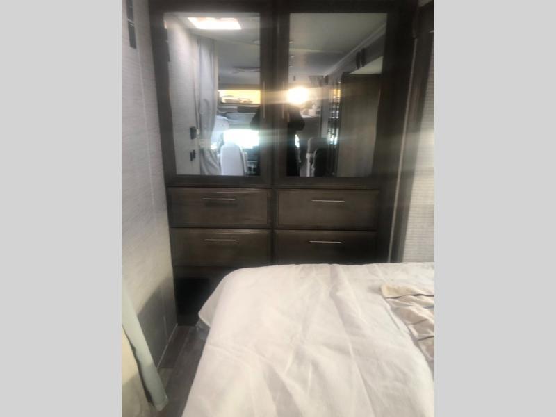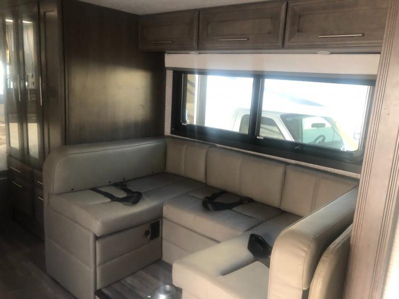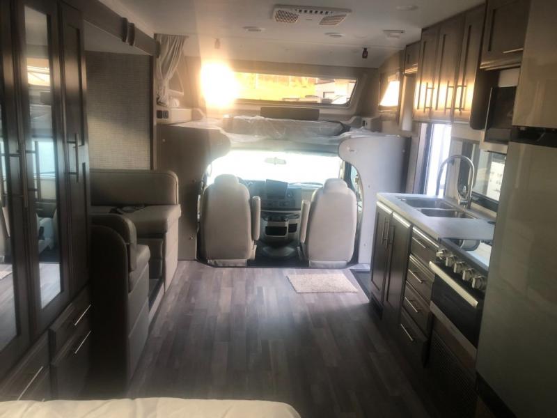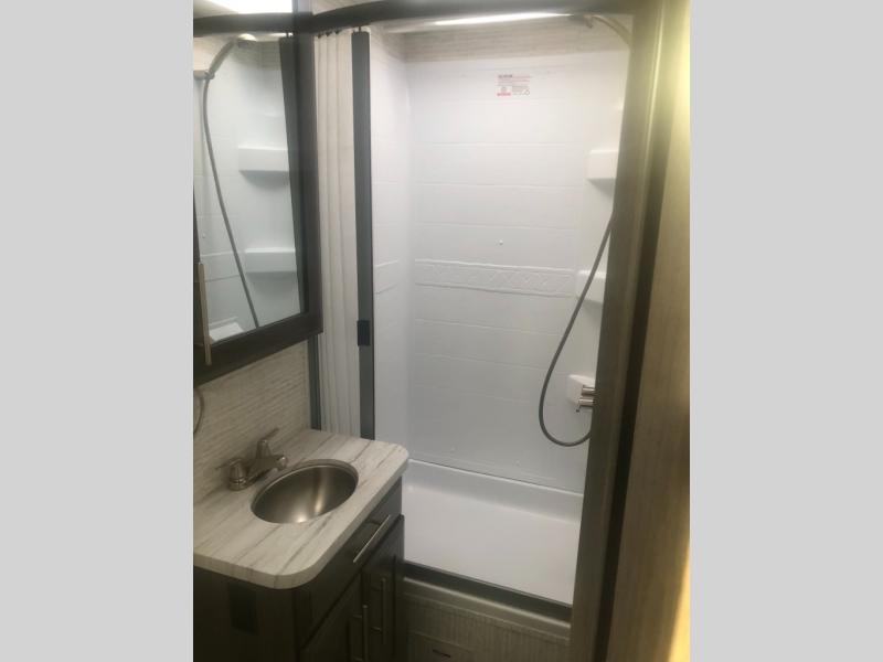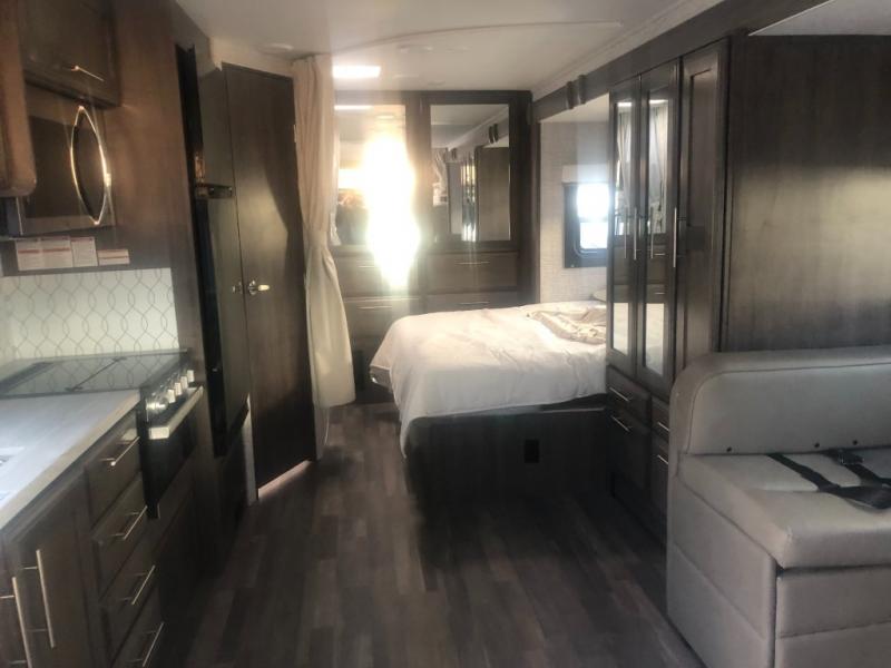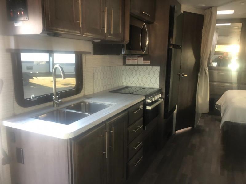 Easily load up and head out for an adventure in this Redhawk with sleeping space for five, a full bathroom, and kitchen amenities to stay fed the whole trip. Once at your campsite, easily let out the slide and the 16' electric awning and plan your next activity. You an use the full bath, make a meal in the kitchen with the Furrion all-in-one cooktop and oven, plus the residential-size microwave, and grab your beverage from the 10 cu. ft. refrigerator. The driver and passenger seats swivel for more interior seating, and if you like, choose the theater seating option in place of the U-shaped dinette.