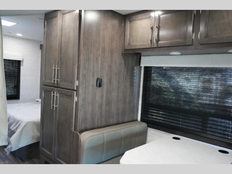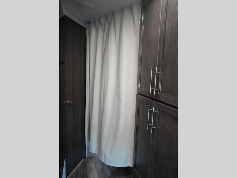 Stay organized with a combination wardrobe/pantry area and a spacious 10 cu. ft. 12V refrigerator for all your food storage needs. -