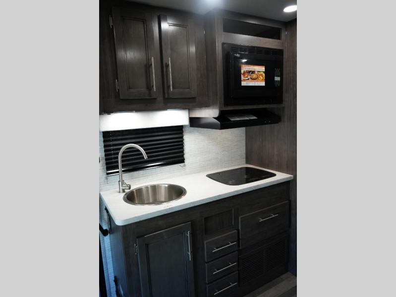Prepare meals on the two-burner cooktop and clean up with ease—perfect for on-the-go families. -