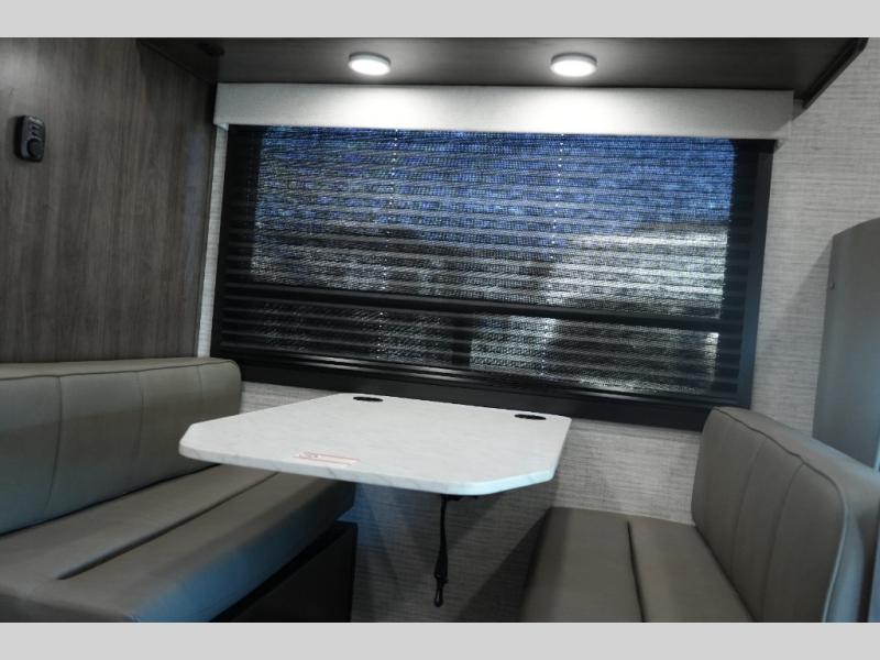 Enjoy a restful night on the 60" x 70" queen bed slide-out, relax in the cozy bunk over the cab, and convert the 42" x 70" booth dinette for extra sleeping space. -