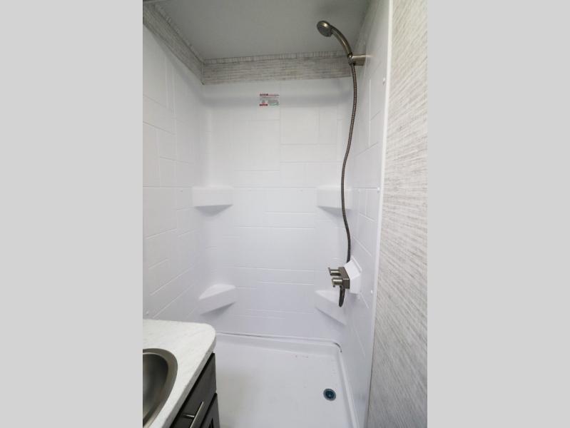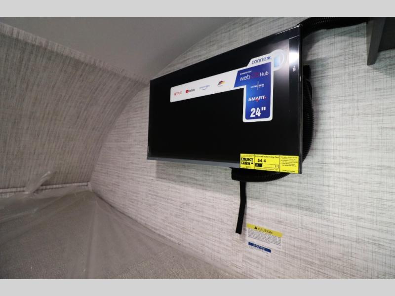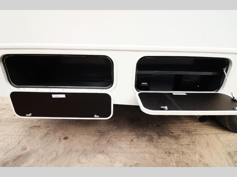 Exterior Construction: Features a one-piece seamless fiberglass front cap and fiberglass exterior walls with vinyl graphics, offering durability and a sleek appearance.