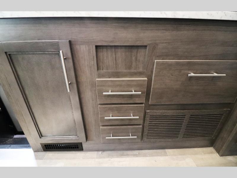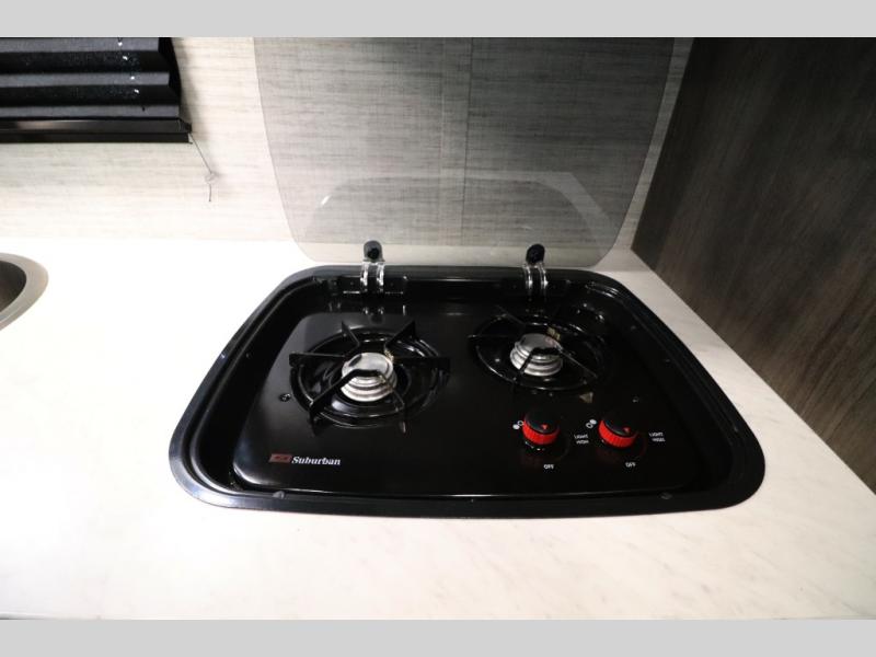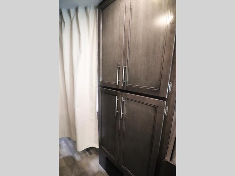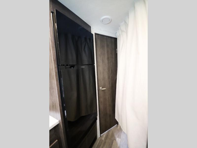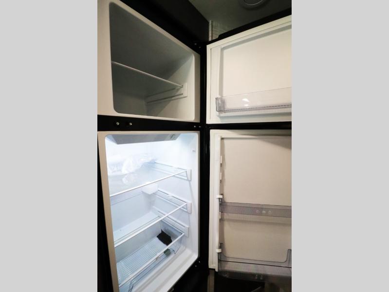 Interior Amenities: Equipped with a queen bed, overhead bunk with a 750-pound capacity, and an 8 cu. ft. gas/electric refrigerator, ensuring a comfortable stay on the road.