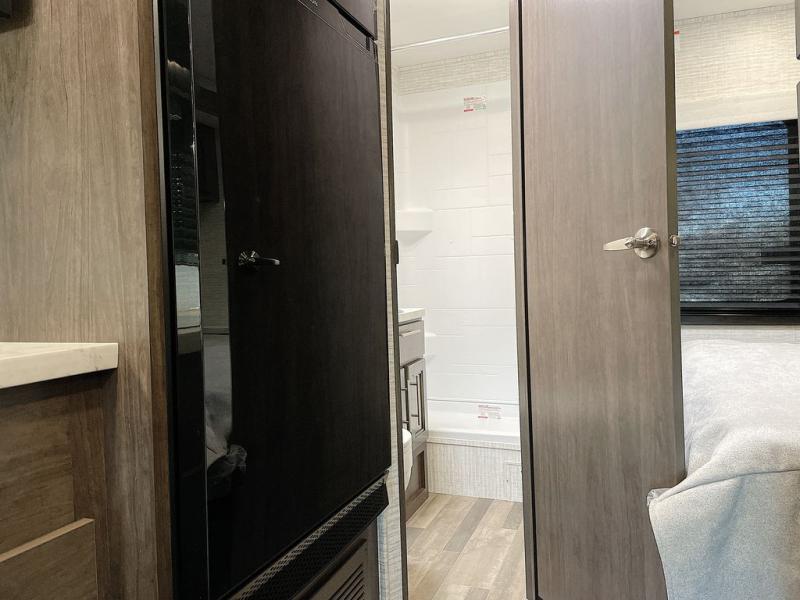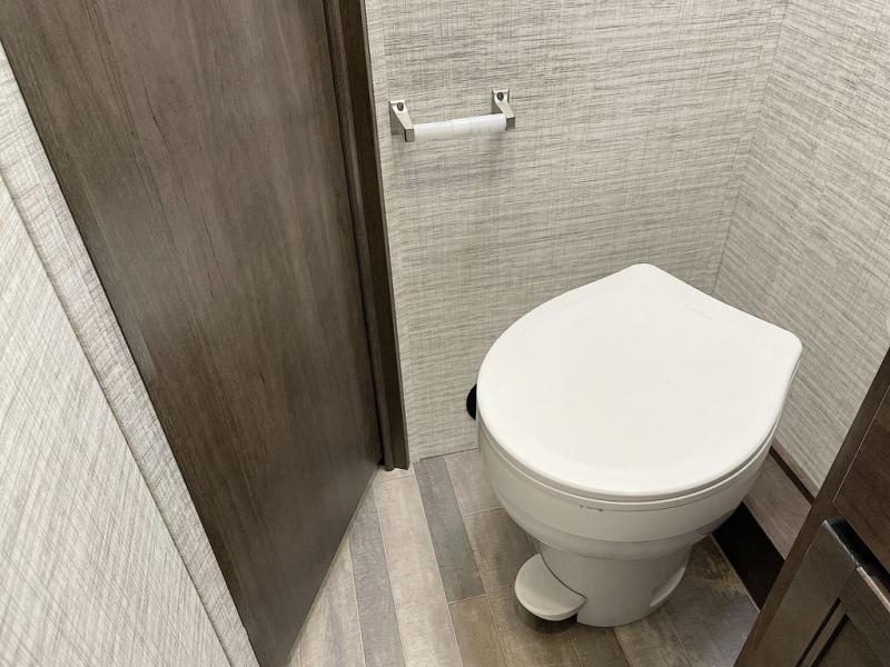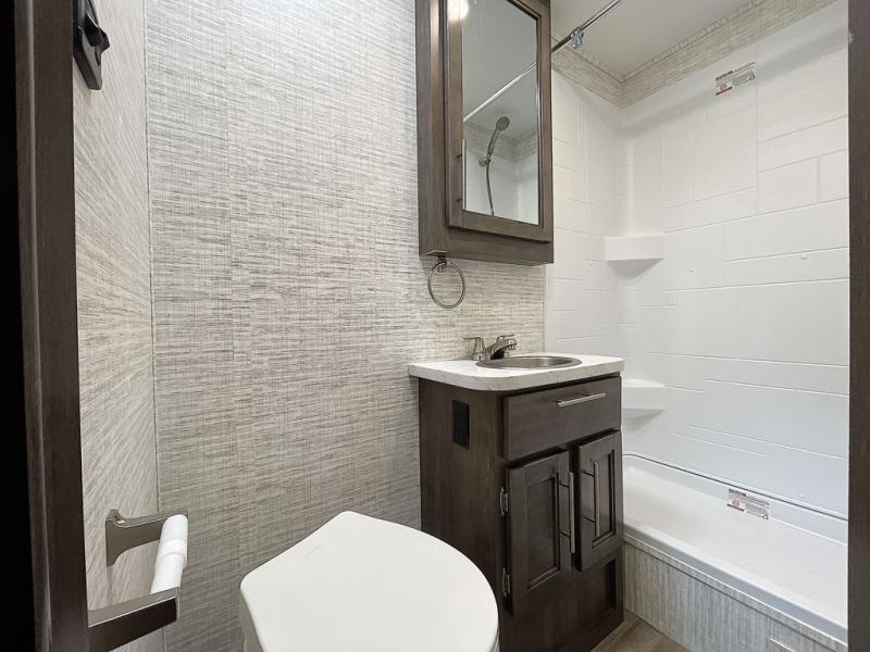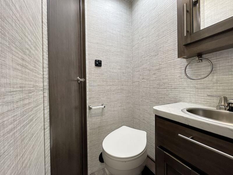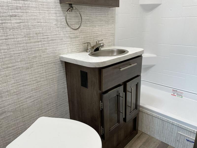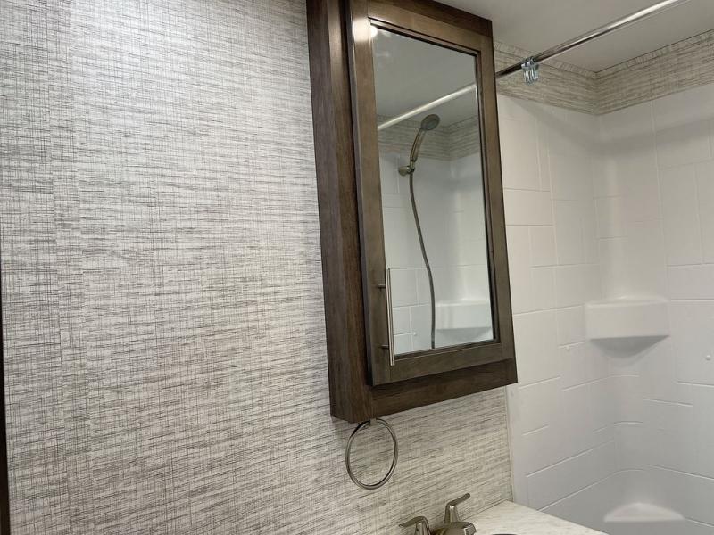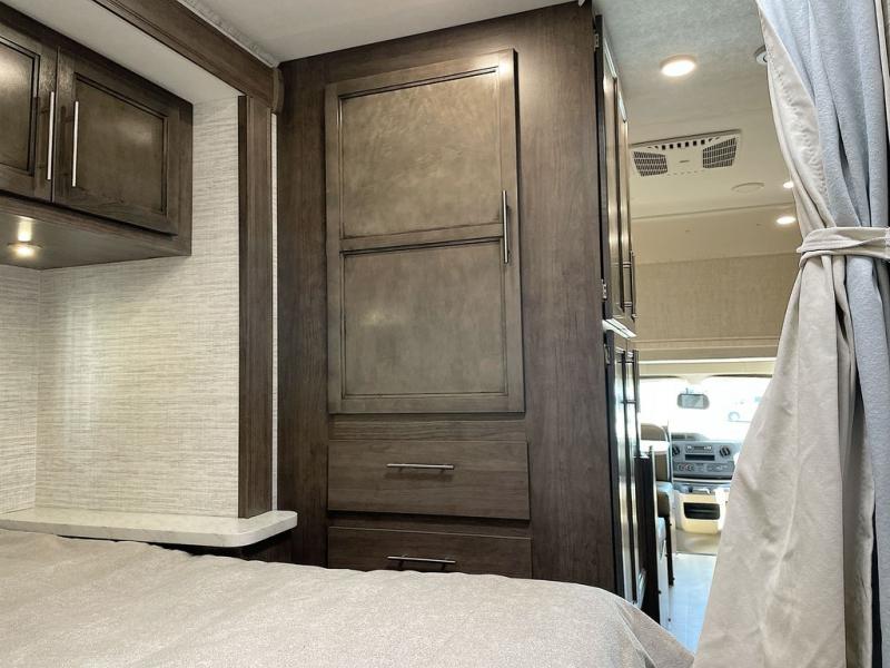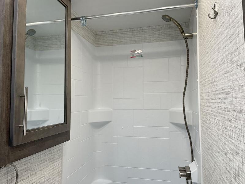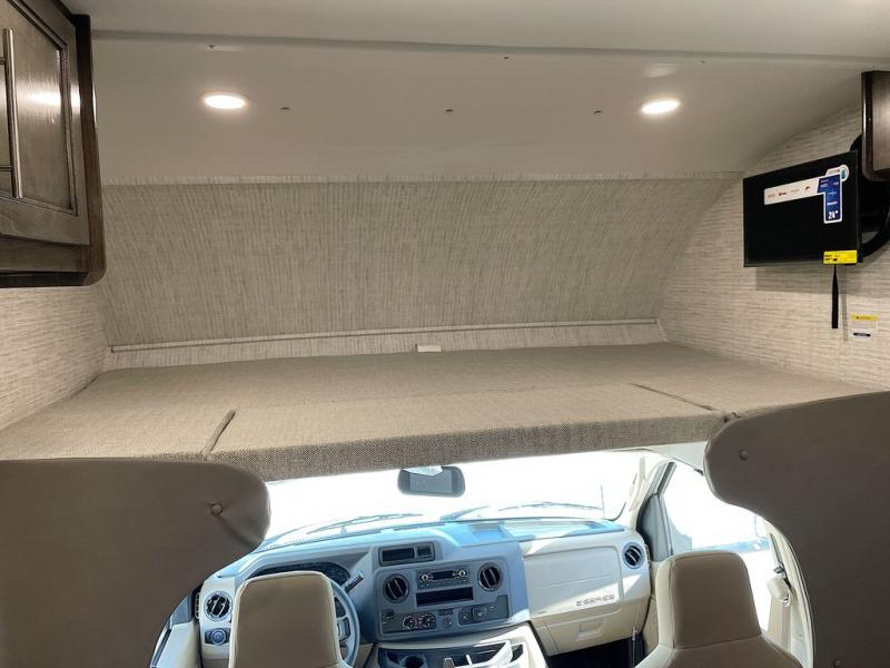 There's a comfortable place to sleep for everyone in this motorhome! From the corner 60" x 70" queen bed that slides out to the bunk over cab, and even the 42" x 70" booth dinette once converted. You can store your favorite snacks and hang up your clothes in the wardrobe/pantry. The chef can prepare delicious meals with the two burner cooktop and if there happens to be any leftovers then they can be stored in the 10 cu. ft. 12V refrigerator. The rear corner bathroom has a 24" x 36" shower that you are sure to enjoy after a long day of traveling!