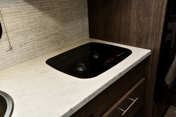Each journey in this coach will be a journey to remember! Once you arrive at the campground, you can make lunch on the two burner cooktop with a flush cover, or use the convection microwave oven. There is also a 12V refrigerator and overhead cabinets for food, spices, and more. A 48" bench with a removable table will provide a place to dine at, and the mid-coach full bath means you won't have to use the camp's facilities. You'll find two twin beds that convert to a king-size bed in the back, meaning you can camp with your friend or honey!