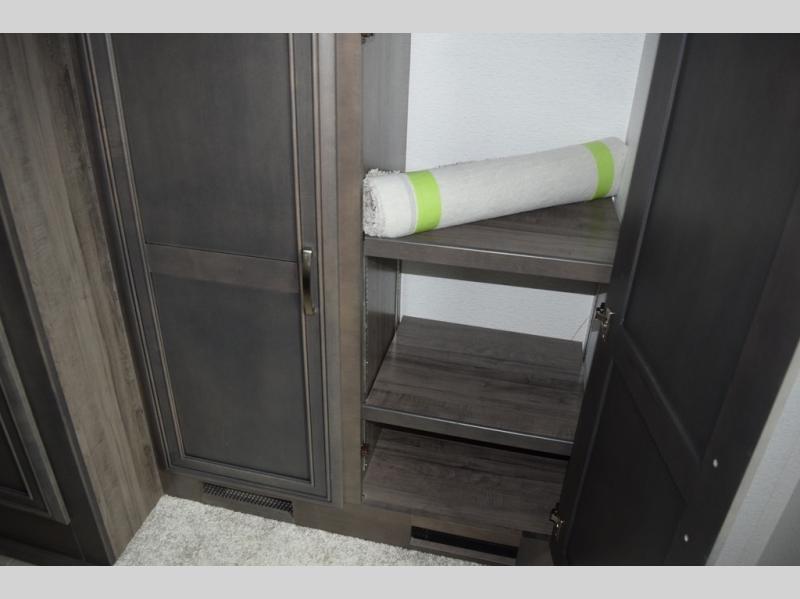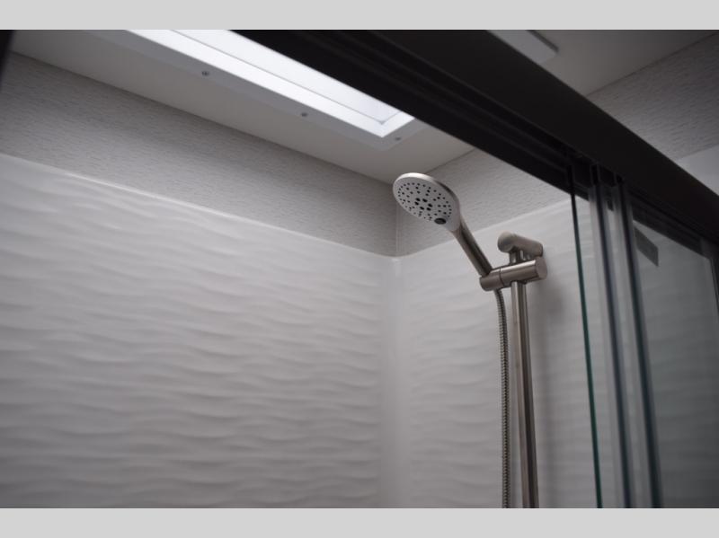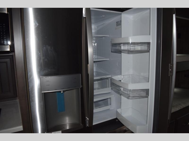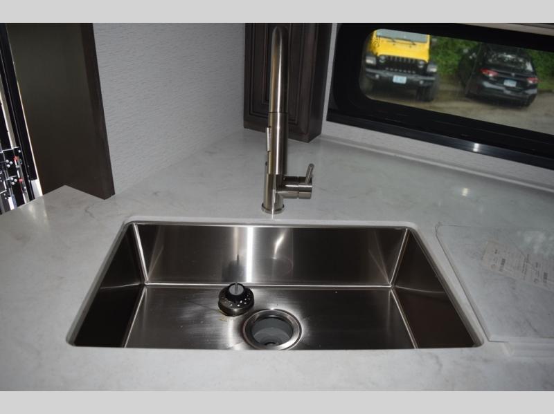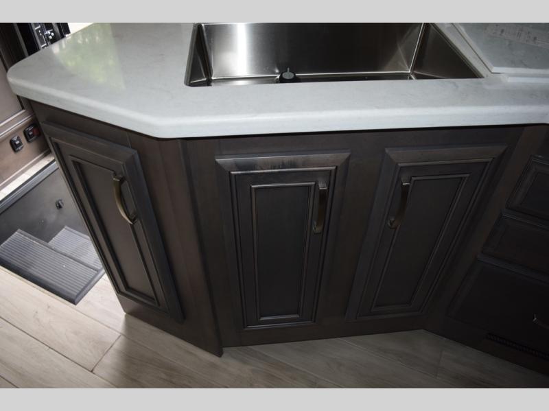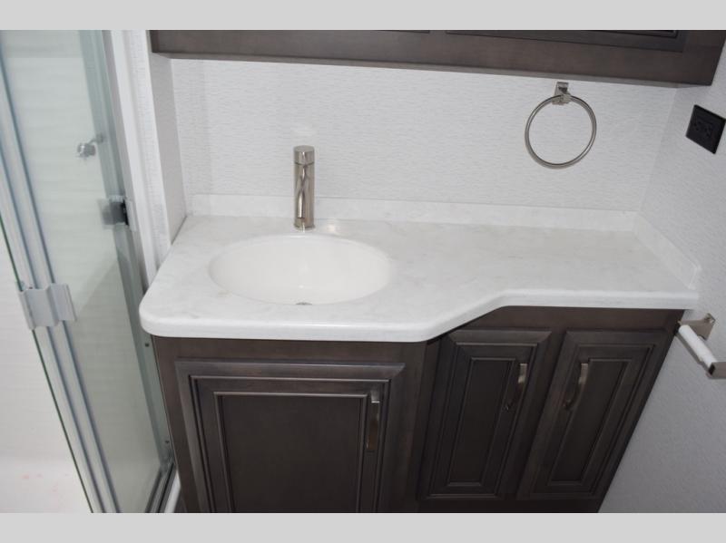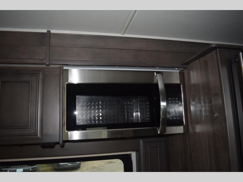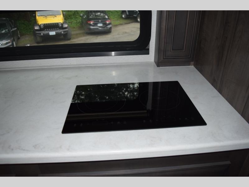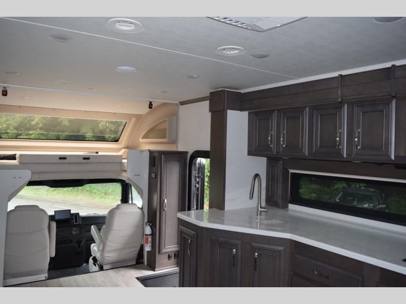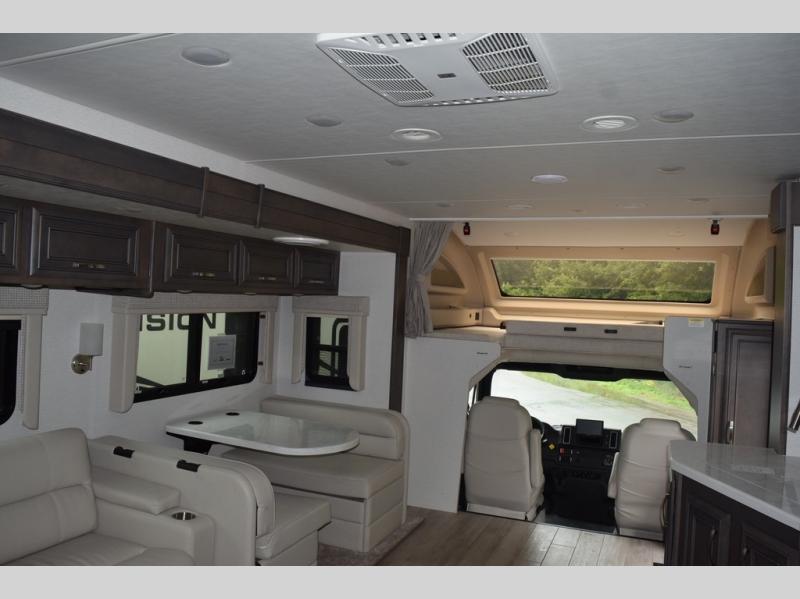 You will be quite impressed with the Jayco Seneca Prestige Super C diesel motorhome! The construction consists of a Stronghold VBL roof, floor, and sidewalls, and the premium Sikkens full-body paint is going to draw attention as you cruise down the highway. The entrance door has the industry's largest travel-view window, and you have four 6V AGM (220Ah) house batteries on a slide out tray for convenience. The JAYCOMMAND control system powered by Firefly will give you access to your coach's functions from the smartphone in your hand, and the matte-finish woodgrain polished porcelain tile flooring has a heated floor mat for extra comfort. The luxury continues on with the addition of the solid-surface countertops and water filtration system, and the 9" Sony® infotainment center with Apple CarPlay® and Android Auto™ as well as the backup and sideview cameras are an excellent contribution to the front cab area.