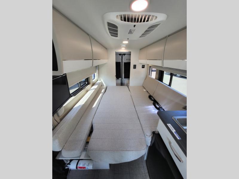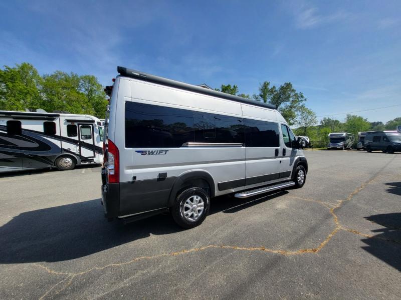 Head out on your greatest adventures with one of these Jayco Swift Class B gas motorhomes! Off-grid camping is made hassle-free with the 200-watt roof-mounted GoPower solar panel, plus there is an Onan 2800W generator with auto-gen start for all your other power needs. Each model includes the JRide system with Hellwig helper springs and a premium heavy-duty suspension for smooth handling, and the Thule armless patio awning with LED lights will create an outdoor living space you are sure to love. Head inside to find a solid surface kitchen countertop with a pull-out extension, four sliding vented windows, a soft-touch vinyl ceiling, plus many more comforts. The Uconnect 5 NAV infotainment center with Apple CarPlay® and Android Auto™ will also come in handy as you travel to your destination!