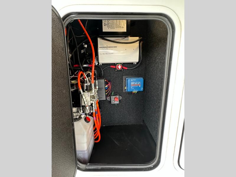 * Power hitch pin, road armor suspension, strong axles (7,000 lb Dexter) with good tire setup.