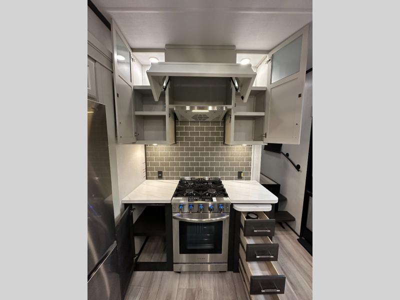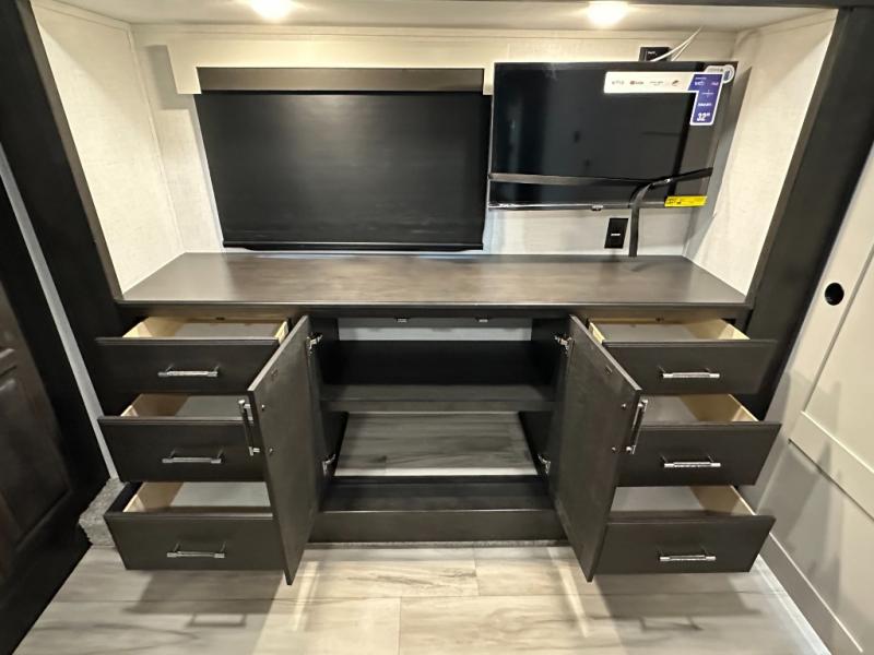 Full Body Paint, Rear Living w/ Hide a Bed Sofa, Theater Seating, Fireplace, King Bed, Stackable Washer/Dryer Prep.