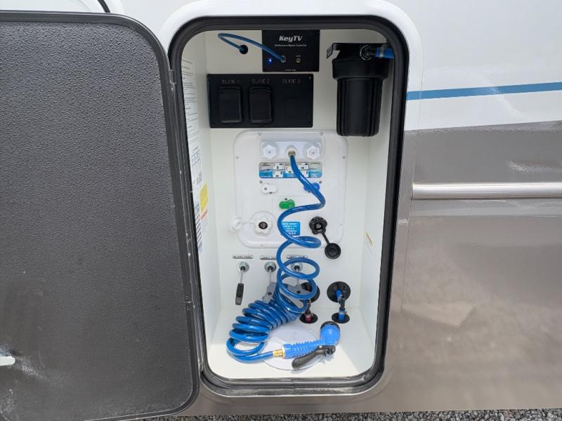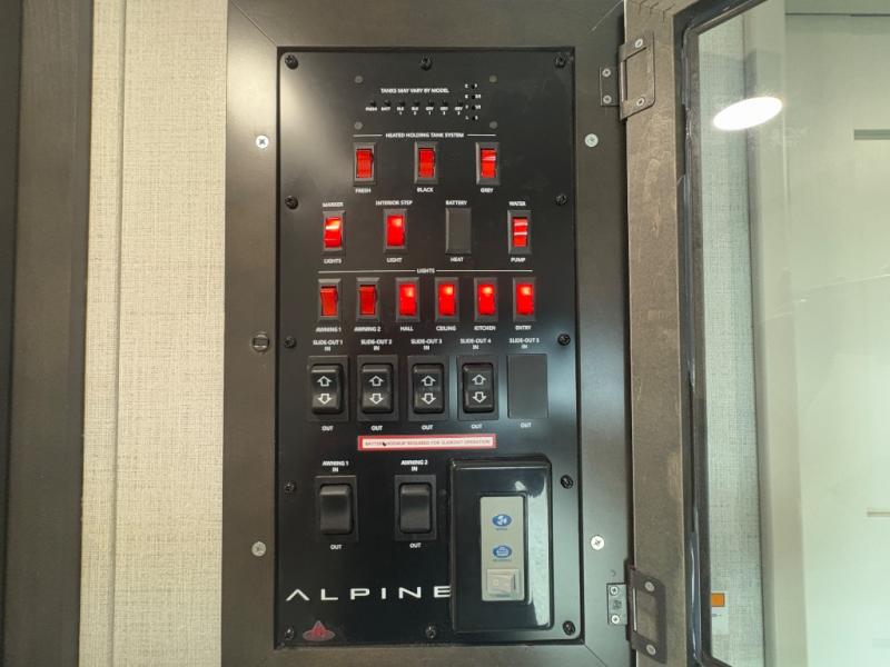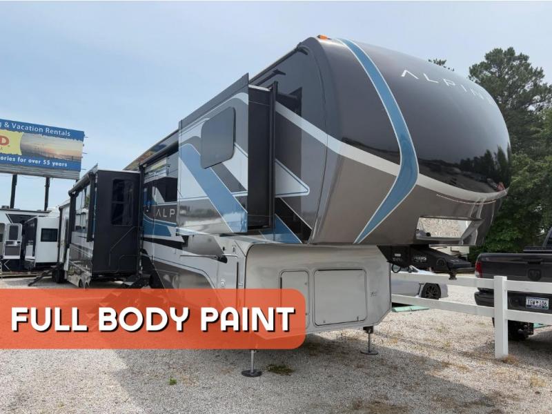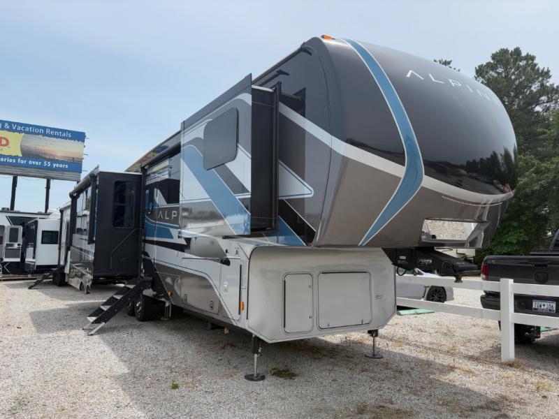 Luxury is not an option, it is a standard with each one of these Keystone RV Alpine fifth wheels! A 8' 4" wide body construction will create an open, residential feeling, and cutting-edge technology will provide a hassle-free camping experience. The Tru-Fit slide construction is more durable and minimizes motor structural stress, as well as resists leaking, and the Blade Pure airflow system provides residential comfort with its high-performance. Each fifth wheel includes designer flooring throughout, stunning solid wood cabinet doors, luxurious crown molding, and solid surface countertops in the kitchen. The exterior also includes an outside shower with hot and cold water, Lippert strut assisted SolidSteps, Hitch Vision with LED lighting, and many more conveniences!