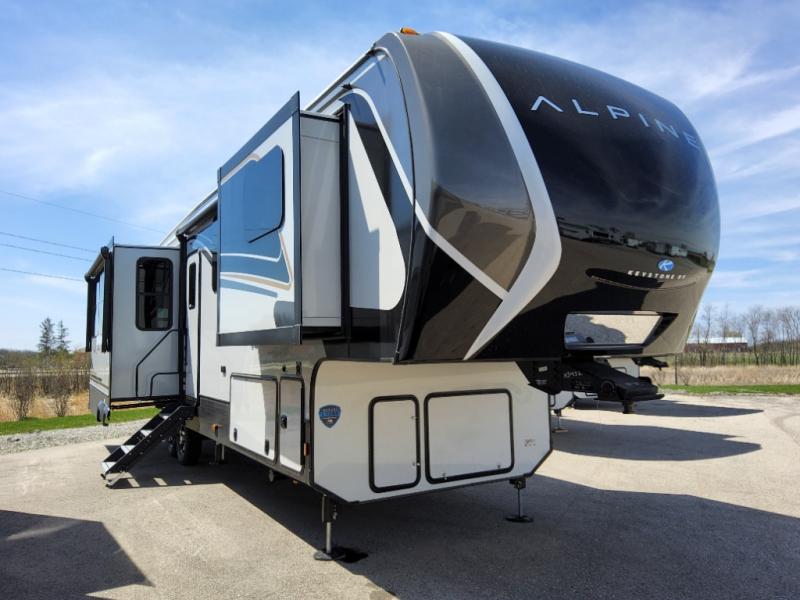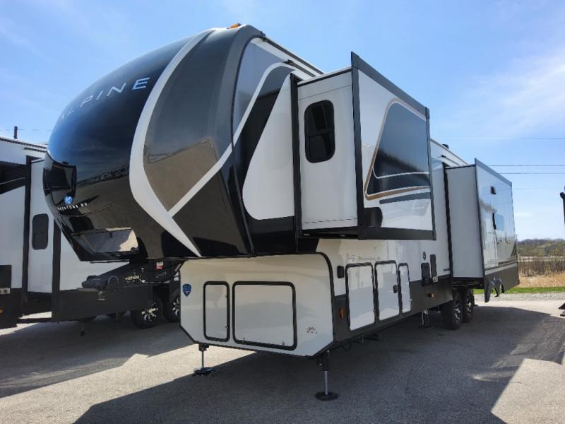 Luxury is not an option, it is a standard with each one of these Keystone RV Alpine fifth wheels! A 8' 4" wide body construction will create an open, residential feeling, and cutting-edge technology will provide a hassle-free camping experience. The Tru-Fit slide construction is more durable and minimizes motor structural stress, as well as resists leaking, and the Blade Pure airflow system provides residential comfort with its high-performance. Each fifth wheel includes designer flooring throughout, stunning solid wood cabinet doors, luxurious crown molding, and solid surface countertops in the kitchen. The exterior also includes an outside shower with hot and cold water, Lippert strut assisted SolidSteps, Hitch Vision with LED lighting, and many more conveniences!