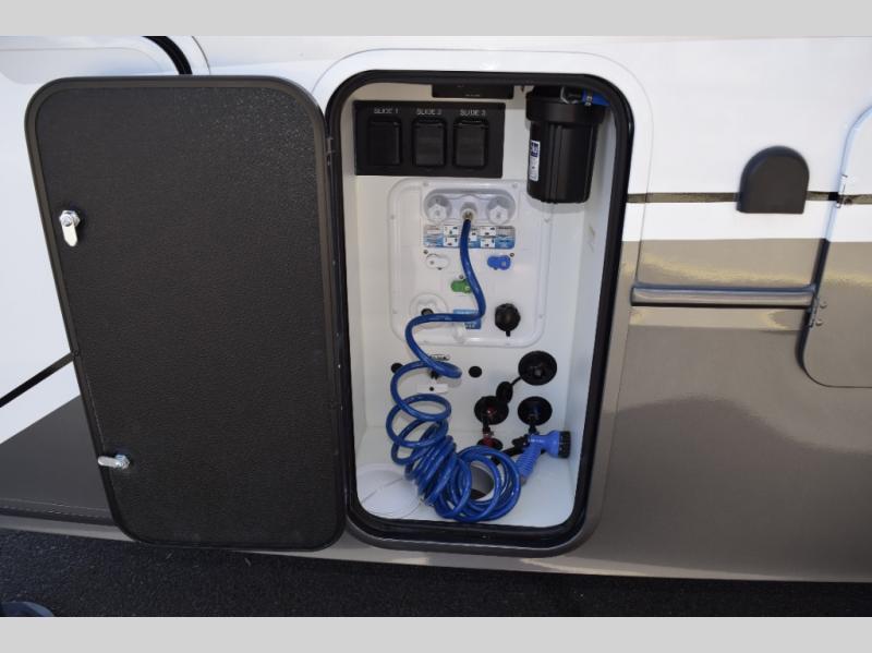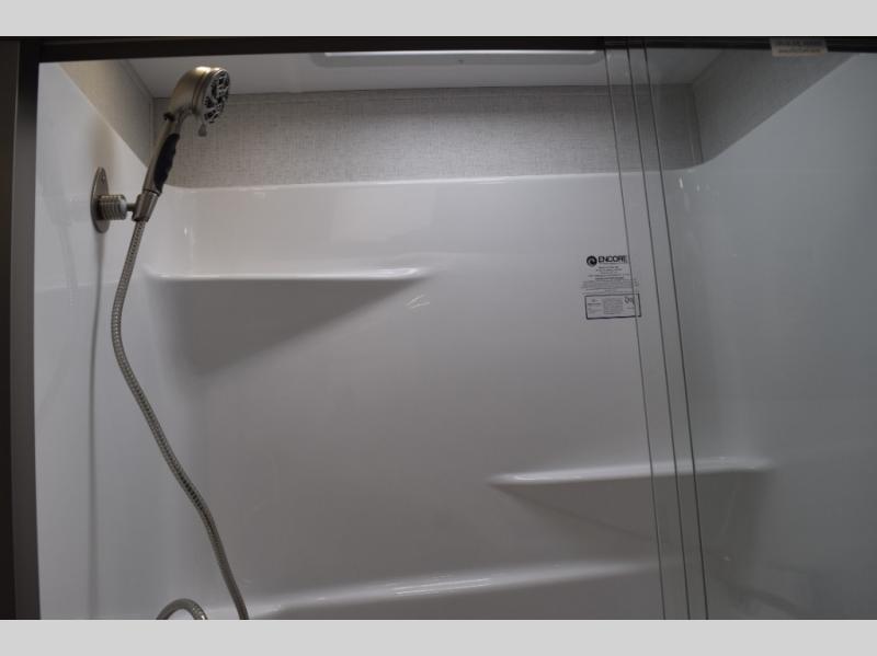 On the exterior, enjoy even more luxury with an outside shower featuring hot and cold water, Lippert strut-assisted SolidSteps for easy entry, and Hitch Vision with LED lighting to make hooking up a breeze.