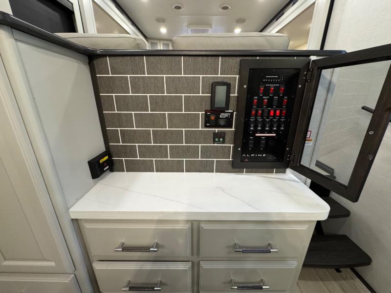 Luxury is not an option, it is a standard with each one of these Keystone RV Alpine fifth wheels! A 8' 4" wide body construction will create an open, residential feeling, and cutting-edge technology will provide a hassle-free camping experience. The Tru-Fit slide construction is more durable and minimizes motor structural stress, as well as resists leaking, and the Blade Pure airflow system provides residential comfort with its high-performance. Each fifth wheel includes designer flooring throughout, stunning solid wood cabinet doors, luxurious crown molding, and solid surface countertops in the kitchen. The exterior also includes an outside shower with hot and cold water, Lippert strut assisted SolidSteps, Hitch Vision with LED lighting, and many more conveniences!