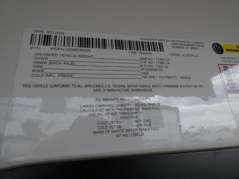 New 2025 Keystone RV Alpine 3700FL Fifth Wheel