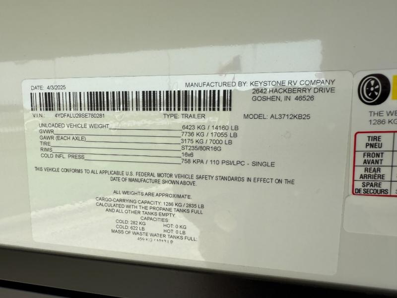 New 2025 Keystone RV Alpine 3712KB Fifth Wheel