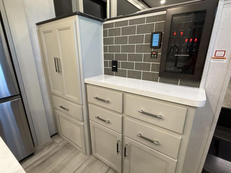 Luxury is not an option, it is a standard with each one of these Keystone RV Alpine fifth wheels! A 8' 4" wide body construction will create an open, residential feeling, and cutting-edge technology will provide a hassle-free camping experience. The Tru-Fit slide construction is more durable and minimizes motor structural stress, as well as resists leaking, and the Blade Pure airflow system provides residential comfort with its high-performance. Each fifth wheel includes designer flooring throughout, stunning solid wood cabinet doors, luxurious crown molding, and solid surface countertops in the kitchen. The exterior also includes an outside shower with hot and cold water, Lippert strut assisted SolidSteps, Hitch Vision with LED lighting, and many more conveniences!